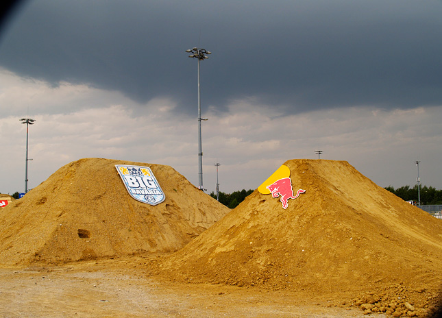 Je sobota, 12 hodin, sedíme tady všichni v riders zoně na BIG in Bavaria, ve stanu, na pohodlnejch křeslech a nudíme se. Venku fouká. Slunečníky RedBull lítají vzduchem. Nejezdí se. Je zataženo. Na nástěnku před stanem, kde je normálně časovej plán, někdo fixou napsal „Don´t worry, be happy“. Zbývá jen doufat, jestli se vůbec pojede…