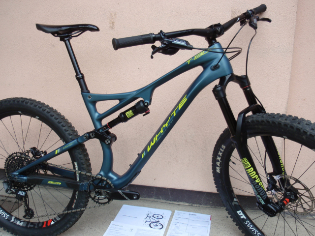 Prodám jeté kolo Whyte T-130 C R Carbon. Velikost: M. Velikost kol: 27,5"+. Oproti sériovému osazení jsou na kole lepší luxusní prémiové výplety DT Swiss XM 1501 (katalogová cena výpletů: 27 800kč) a upgrade vidlice na Rock Shox Pike RCT3 (celková cena upgradu 9489kč - doložím dokladem). Kolo je po celkové technické stránce v perfektním a vcelku hezkém zachovalém stavu. Po celou dobu provozu bylo kolo pravidelně servisováno stím, že nyní je po velkém servise. Při tomto posledním velkém servise proběhla výměna ložisek v rámu, výměna ložisek v zadním náboji a výměna spodního ložiska hlavového složení. Dále kolo dostalo nový zadní plášť, gripy, řetěz, zadní brzdové destičky, lanka, bowdeny a bezdušové pásky ráfků. Dále proběhl malý servis vidlice, tlumiče, teleskopické sedlovky a odvzdušnění brzd. Celková cena tohoto servisu byla 9343kč (doložím fakturou) - od tohoto servisu bylo kolo už jen pouze 2x ježděné, takže zmíněné vyměněné díly jsou stále v zánovním stavu. Karbonový rám. Kolo je po 1. majiteli a je k němu doklad o koupi+manuály. Katalogová cena: 79 999kč + kola 27 800kč + upgrade vidlice 9489Kč. Cena: 32990kč