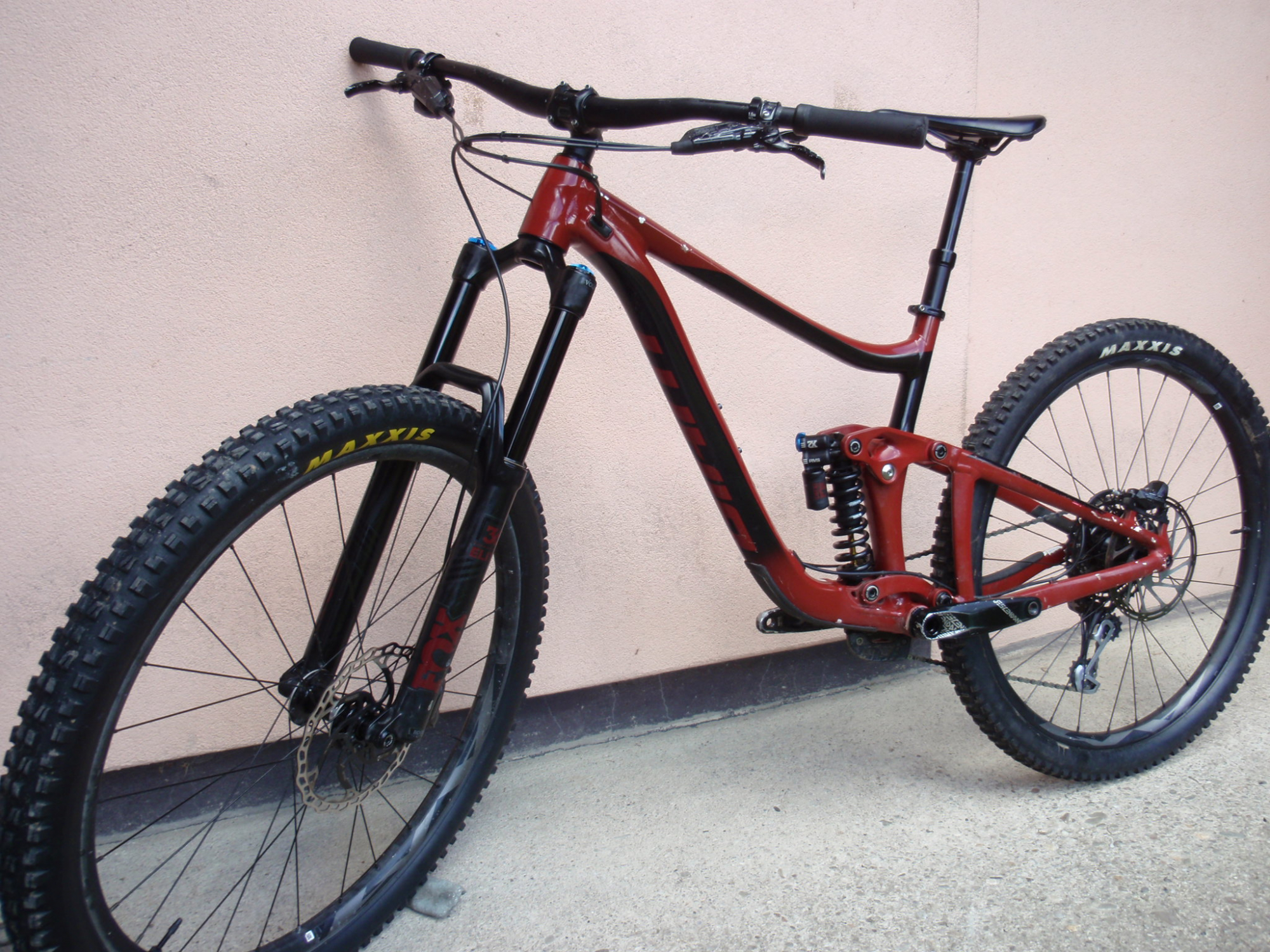 Prodám jeté kolo Giant Reign SX 29". Velikost: M. Velikost kol: 29". Až na lepší přehazovačku, gripy a přední kotouč sériové osazení. Kolo bylo ježděno jeden a půl sezóny a je po celkové technické stránce v dobrém stavu, vše funguje jak má. Kolo je ježděné, takže jsou na něm samozřejmě nějaké ty běžné provozní oděrky, ťukance, škrábance a známky užívání (nečekejte prostě zánovní leštěnku) - celkový kosmetický stav kola jsem ale zohlednil v ceně (je to ale jen pouze kosmetika, technicky je kolo vpořádku a plně funkční). Na kole je zánovní řetěz a přední plášť. Před prodejem proběhl malý servis vidlice. Perfektní odpružení - vidlice Fox 36 Performance Elite (katalogová cena této vidlice je 35 990kč) a tlumič Fox DHX2 Factory (katalogová cena tohoto tlumiče včetně pružiny je 25 430kč). Kolo je po 1. majiteli a bylo zakoupeno v Progress Cycle v Praze. Katalogová cena: 87 999kč. Cena: 36990kč