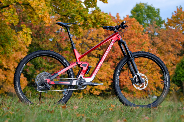 Kolesá: DT Swiss ex1700 (prezlečené ex511) na nábojoch dt 350 a dt výplete. Zadný ráfik menený za ex471