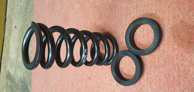 Pruzina je jako nova,kupoval jsem ji zcela novou,jeta cca 10x,poridil jsem na sebe 450lb- to je duvod prodeje. V cene jsou vymezovaci podlozky- rozmery viz.foto. Mel jsem ji na tlumici 240x76 tedy 3" DVO Jade