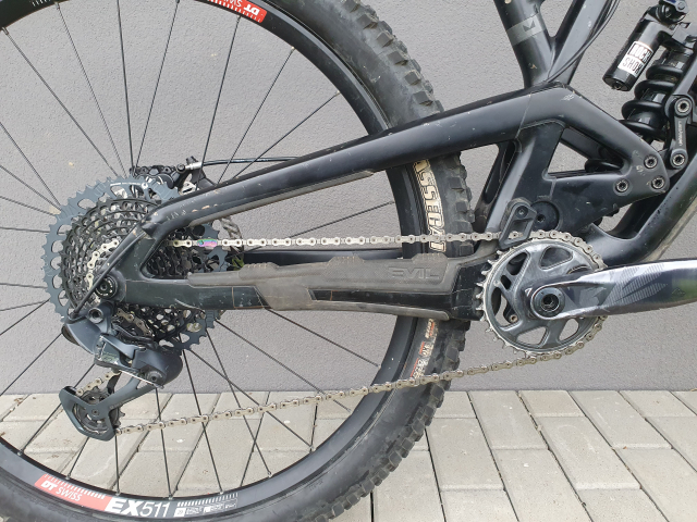 - Zadné: Hub Industry Nine Enduro S Hydra 30.5mm 157x15mm ktorý znie ako sršeň :), ráfik DT Swiss EX511 ako upgrade smerom k DH, plášť Maxxis Assegai 29x2.5, vložka proti defektom
