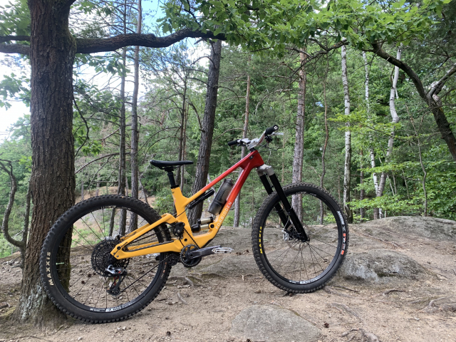 Prodán rám Forbidden Dreadnaught V2 ve velikosti S2 polepený ochrannou fólií RideWrap s tlumičem Intend Hover. Součástí jsou patky na 27.5 i 29 kola.