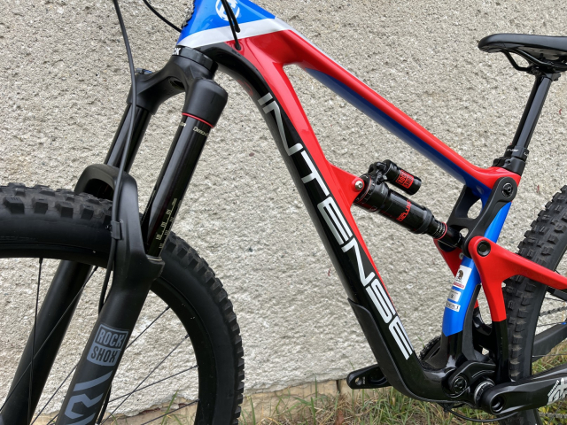 Rám + tlumič: Carbine CF+ Rock Shox Super Deluxe RT3, 3 polohy, možnost uzamknutí, zdvih 155 mm.