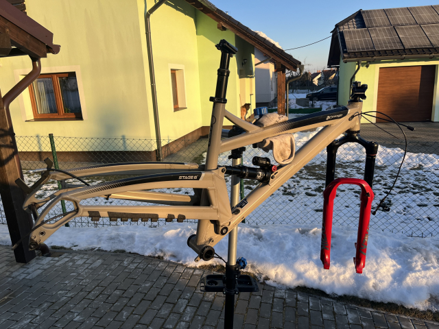 Soucasti ramu je sedlovka One Up v2 210mm, + Tlumic Fox DPX + RS Lyric Ultimate. Ponecham stred DUB, a kabelaz k vnitrnimu vedeni, at se s tim nemusis pri stavbe trapit;)…