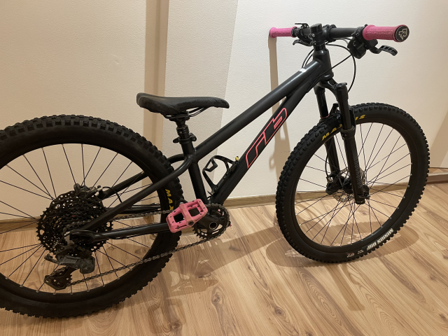 Prodám dětské kolo RB AM125 v nejvyšší výbavě. Rám mullet 26”/24” vidlice rock shox judy vzduchová, hydraulické brzdy magura, teleskopická sedlovka, pláště maxxis minion dh pedály gripy raceface. Ježděno dcerou 2 roky. Barevná kombinace mimo konfigurátor. Cena nového kola 38500.