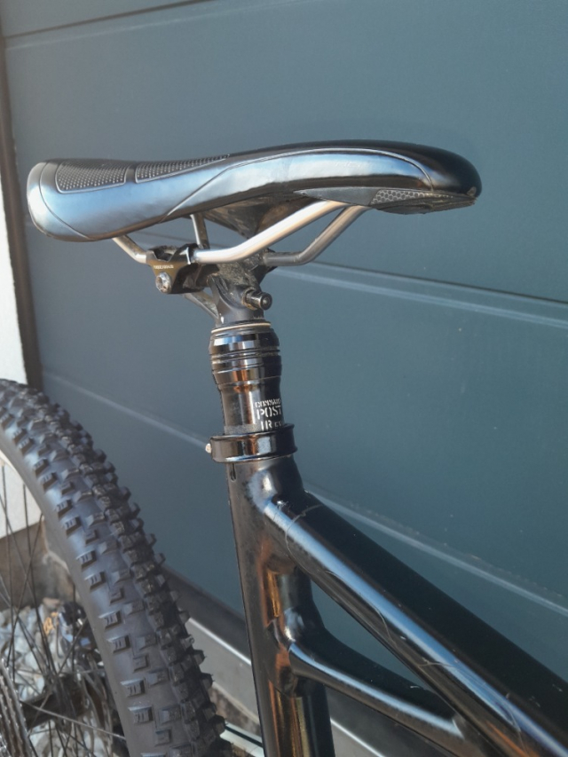 Přední plášť ještě původní Specialized Butcher-bezdušový, zadní nový Schwalbe Smart Sam s duší, oba 27,5x2,35 na ráfcích SPANK OZZY Trail. Regulace vidlice, tlumiče i sedlovky funkční. Loni dělaný servis vidlice i tlumiče.