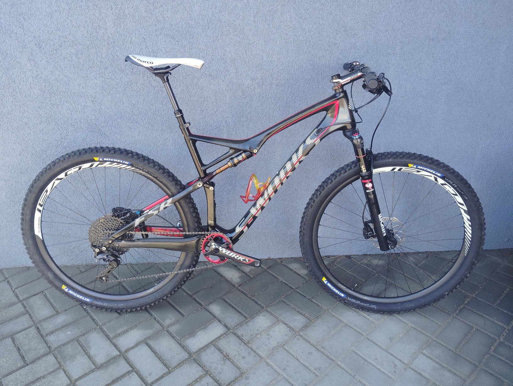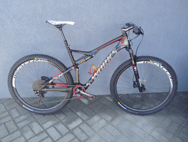 Nejlepší karbonové celoodpružené kolo od výrobce Specialized, velice rychlé a lehké. Velikost rámu je XL, pro výšku přibližně od 184cm. Pořizovací cena byla 190 tisíc. Kola jsou 29 palců.