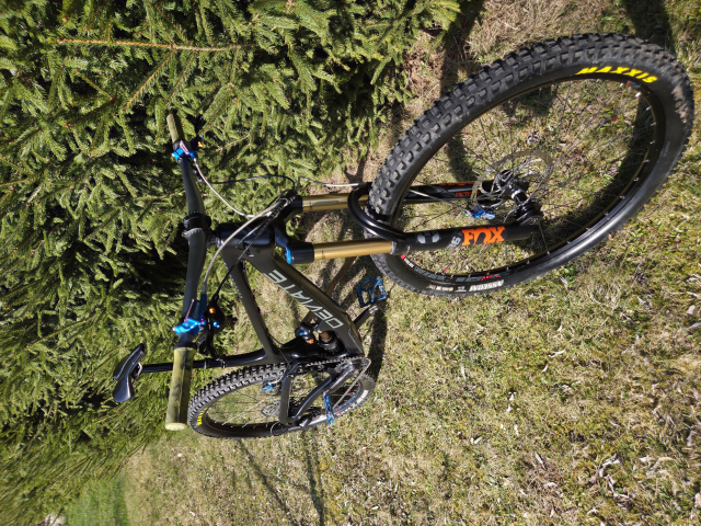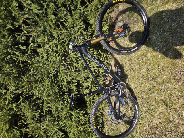 Rám: Full Carbon, high-pivot kinematika se zadní dráhou osy (skvěle žehlí nerovnosti).