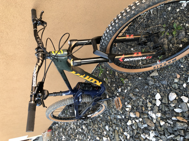 Kolo bylo jeté pořádně a tak i vypadá šrámy se najdou jak na rámu tak vidlici ale nic co ovlivňuje funkčnost. Čepy nemají žádnou vůli ani nevydávají zvuky. Vše funguje jak má šlape jak hodinky.Polepeno Dyedbro.Spoustu komponentů nových koupeno kvůli prodeji. Velikost kola je S (Reach 440) tzn.že je to docela velké s-ko. Rám má nastavení délky zadní stavby a flip chip pro mullet verzi.nebo komplet 29. Na kole jsou výplety 27,5.