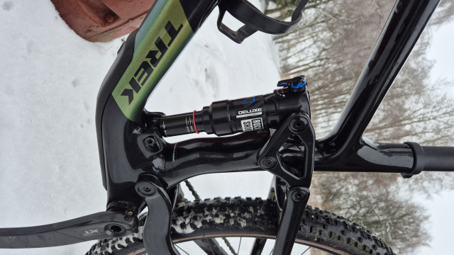 Rám: Karbon OCLV pro horská kola, vnitřní vedení lanek, chránič dolní rámové trubky, slitinový kolébkový spoj, čtyřpolohový prvek Mino Link 4, ABP, Boost148, zdvih 120 mm.