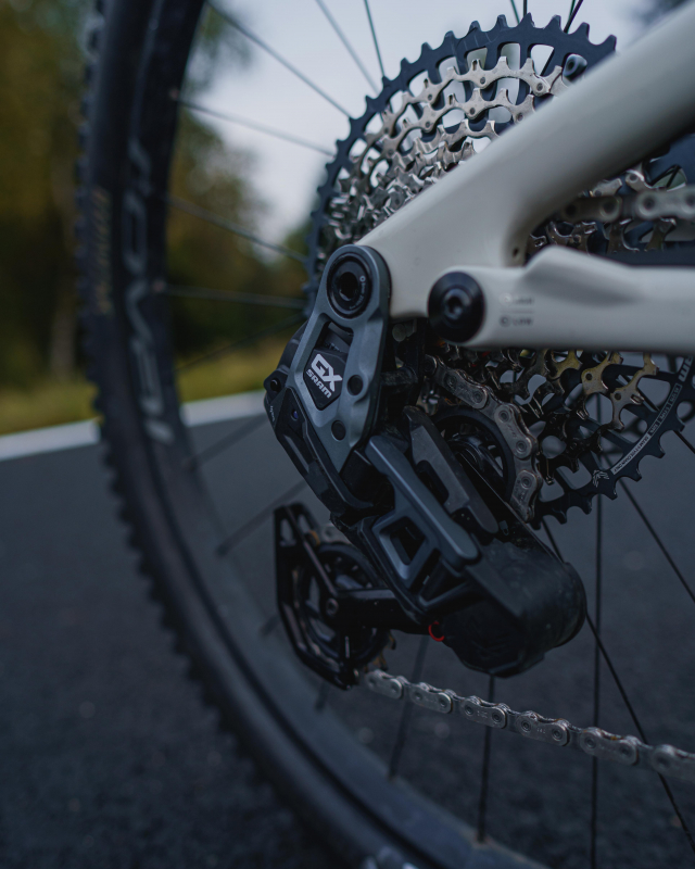 Kolo je osazeno komponenty: elektronické řazení SRAM GX Eagle AXS T-Type, odpružení FOX Performance Elite a nově brzdy SRAM Maven Silver (oproti původním výrazně vyšší brzdný výkon, nejsou na fotkách).