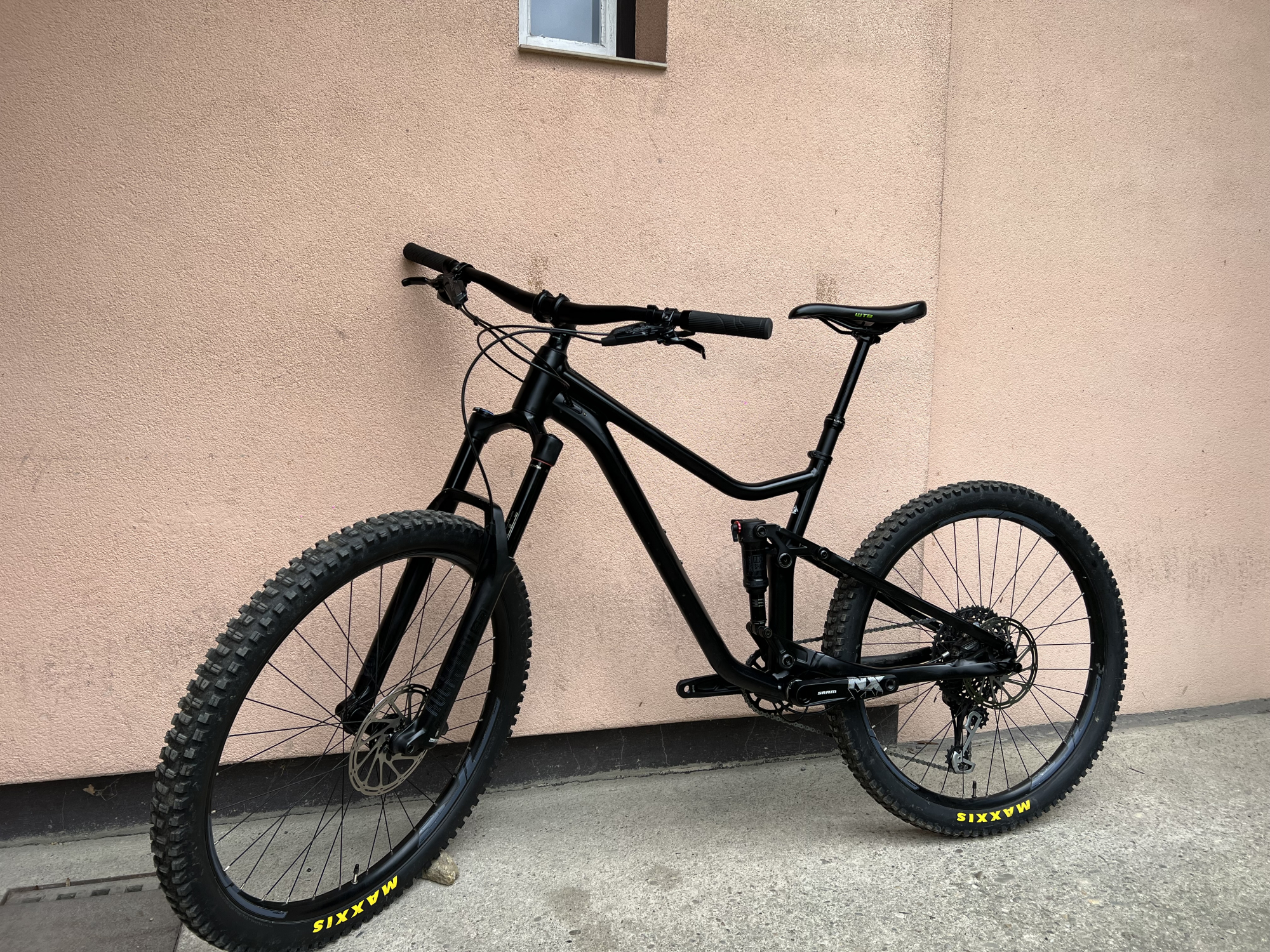 Pláště: př. Maxxis Minion DHR II / zd. Maxxis Dissegtor - zánovní, př. cca 99% / zd. cca 95% vzorku.