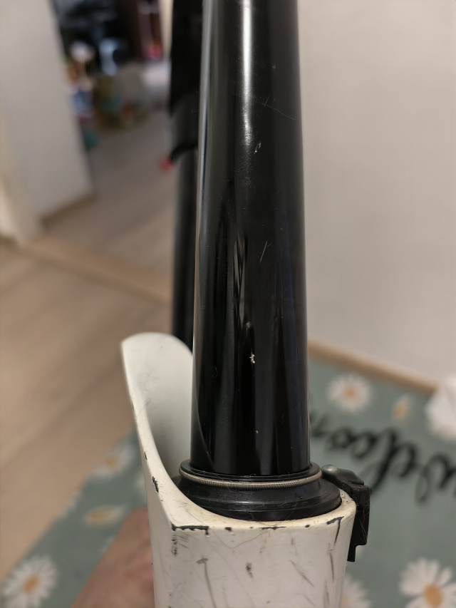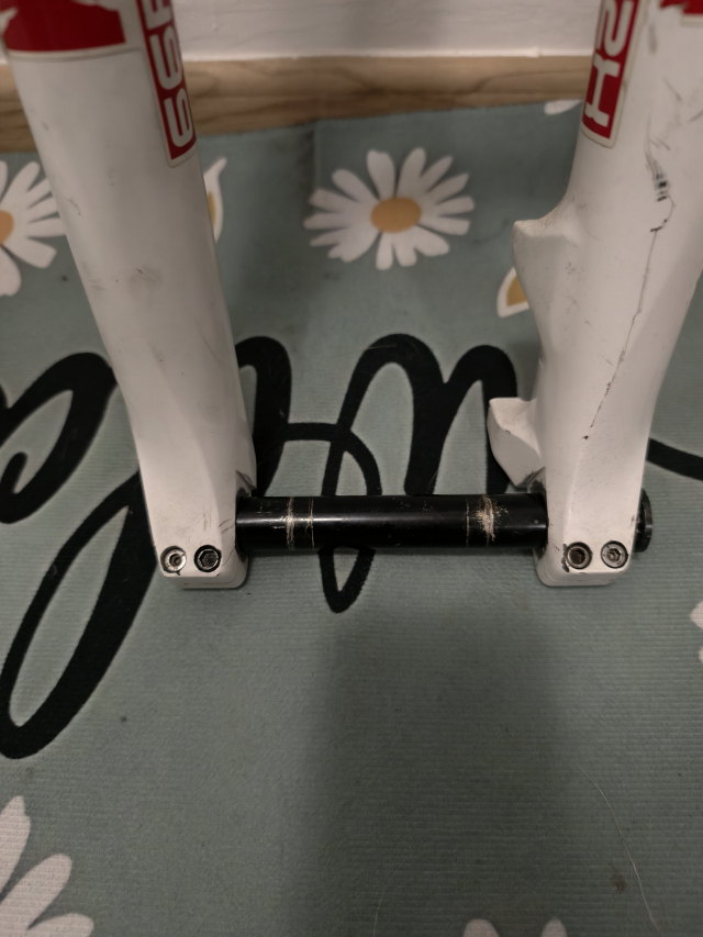 Marzocchi 55 rc3ti , rok 2012, 1 1/8 20cm zdvih 160 mm , nastaveni tlumeni a odskoku, tlumeni pruzina titan + olej. Vidlice ma vylestenou jednu nohu viz foto a dole pod jednou matici je ryha pres kterou tece olej i pri novem o -krouzku... Je treba srovnat dosedaci plochu po okrouzek.. cena 2000kc. Obe vidlice jsou urcene k repasu/oprave nebo na dily...