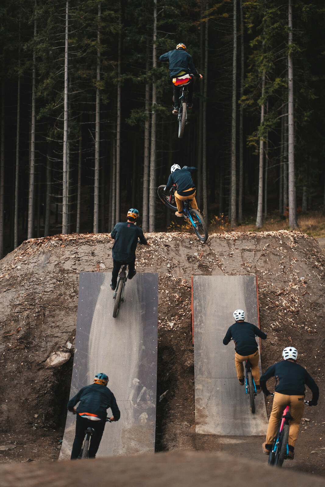 Většinu své inspirace mám samozřejmě ze zahraničních bikeparků. Nejvíc mě asi inspirovala Anglie - Revolution Bikepark. Když jsem poprvé viděl místní jumplines, tak jsem byl unešený a jediné, co jsem chtěl, bylo postavit tohle u nás. Posledních pár zim se navíc snažím trávit ve Španělsku, kde jezdím v Lafenasose Bikepark, který stavěl Nico Vink. On je asi moje největší inspirace. Když jedeš jeho trail, tak je to jako bys jel několik trailů najednou, protože každá lajna má několik možností, jak ji projet, což je úplně top. Ale vše, co tady máme, není jen z mé hlavy, ale je to práce a vize nás všech.