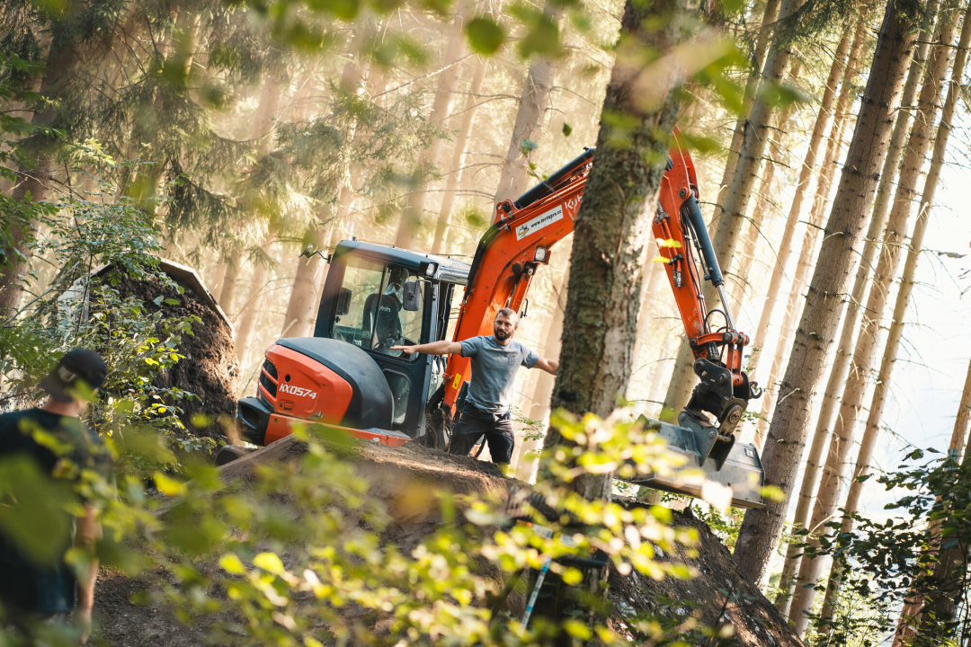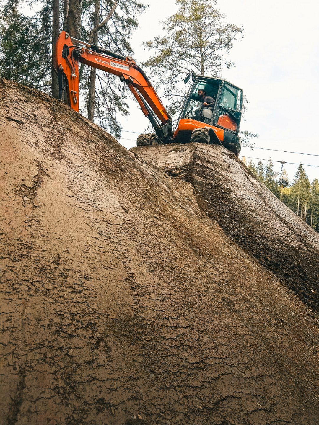 Uff, to je otázka. Začátky na Kopřivné nebyly vůbec jednoduché. Byli jsme jen 3 a většinou nás nenechali dělat v bikeparku, ale pouze práce v areálu. Měli jsme jen čtyřkolku, lopatu a hrábě. Plus na jeden měsíc v sezoně půjčený bagr, se kterým ale nikdo z nás neuměl. Teď máme 3 bagry, 3 dumpery a někdy je nás i 8 a děláme to full time.