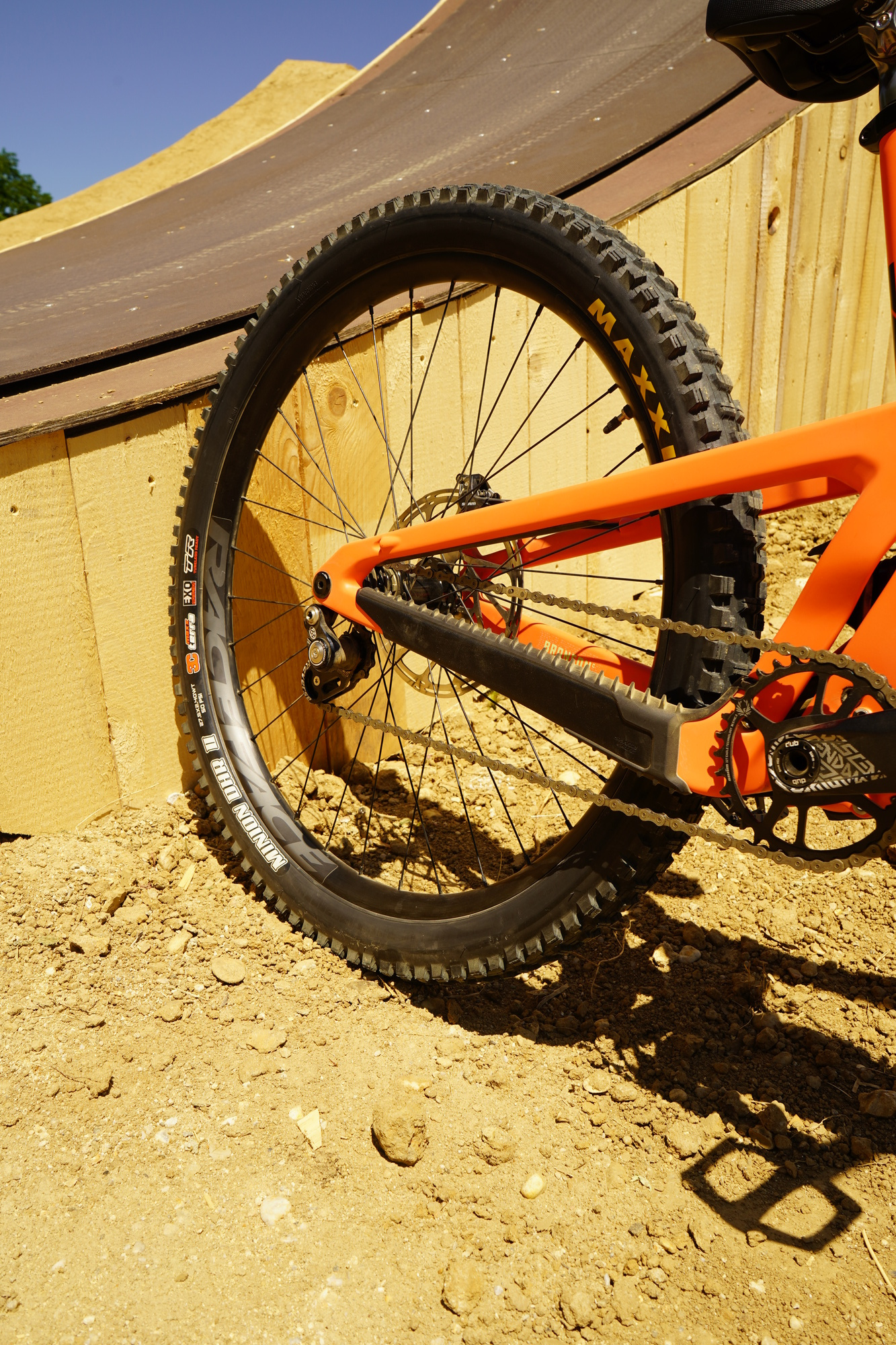 Taktéž jsme změnili velikost kol: originál byl mixed wheel - vpředu 29", vzadu 27,5". My jsme to přestavěli na full 27,5" setup, vpředu s ráfkem Reserve a s nábojem od Reverse Components.