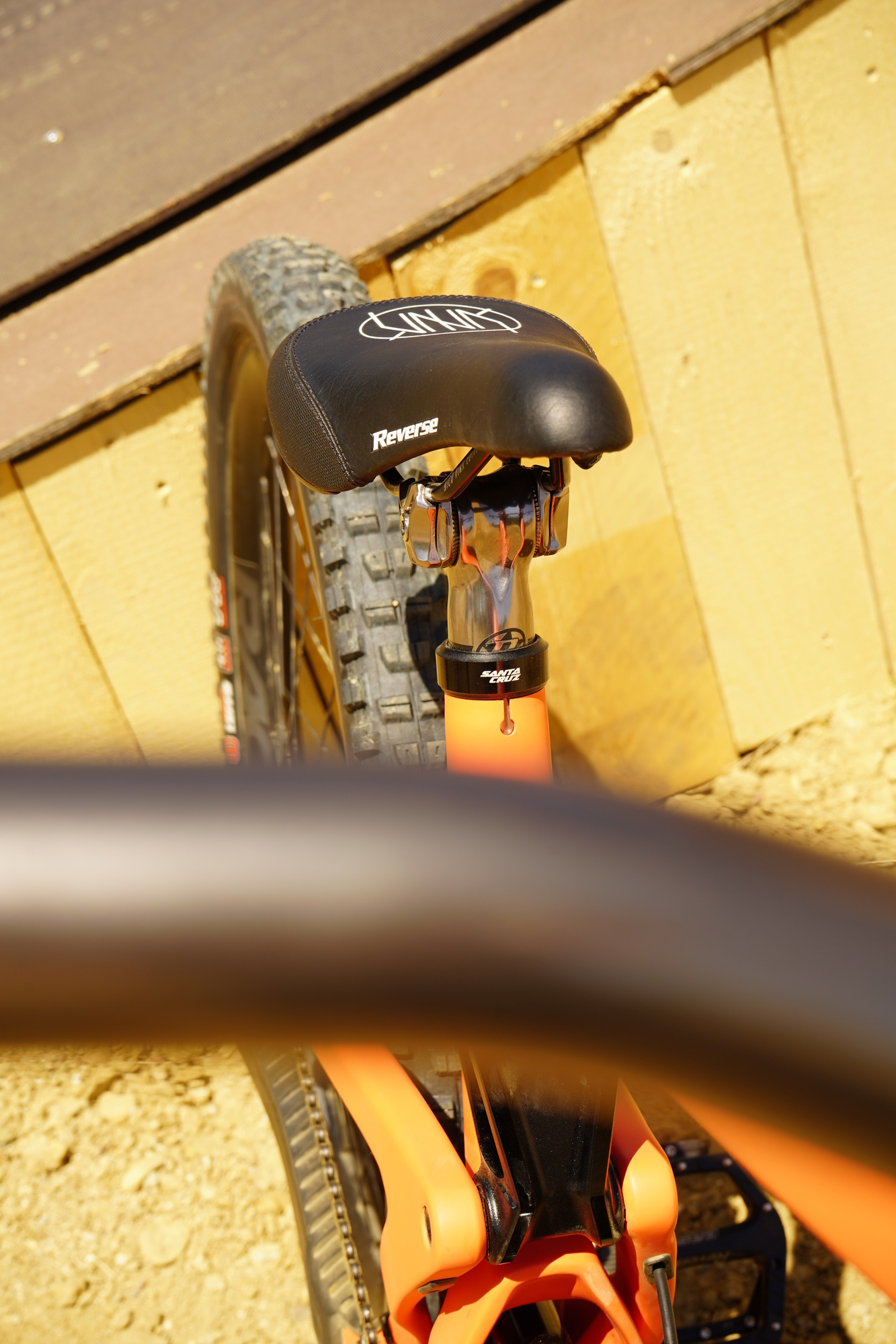 A tak tu máme právě teď k dispozici model kola Santa Cruz Bronson 2024 s původní "starší" geometrií, která je na stavbu slope dura vhodnější než nejnovější model s "endurovější" geometrií. Pro konverzi na slope duro jsme použili komponenty značky Reverse Components - řidítka, sedlovku, sedlo, náboje, singlespeed kit a barspin kit do představce + pedály.