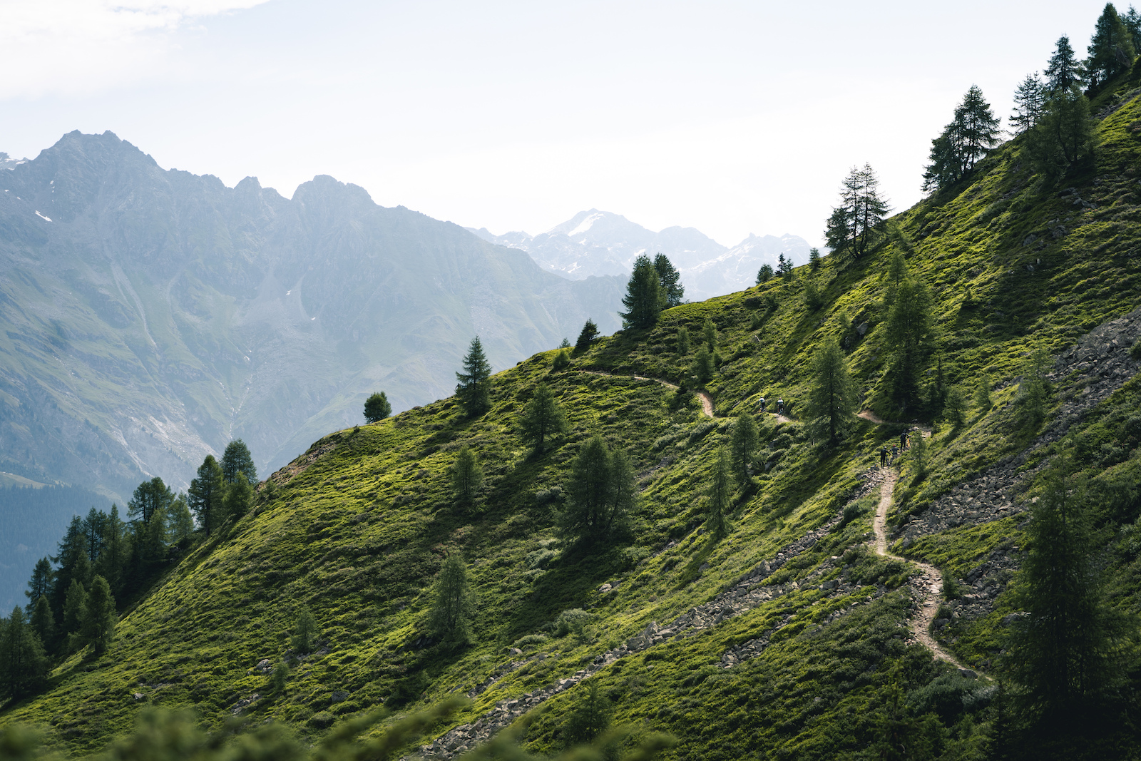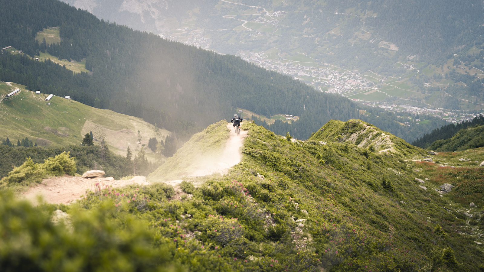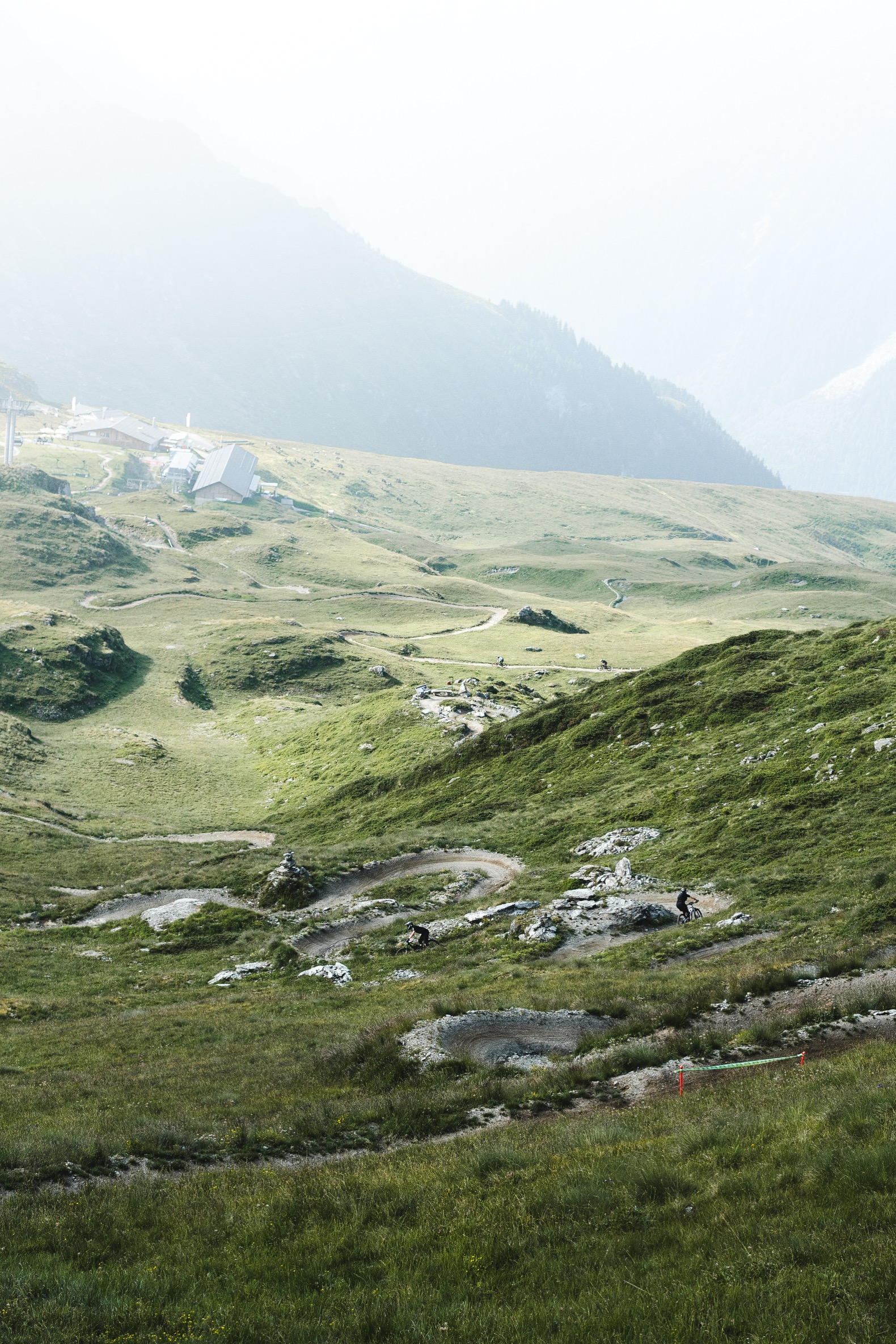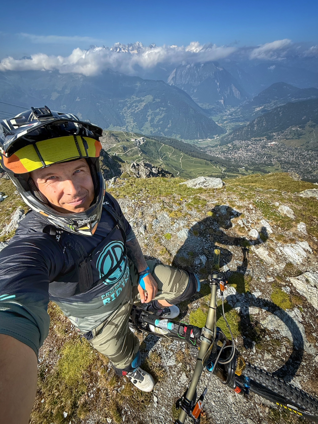 Potom už len spadnúť do Val de Bagnes, kde nás čaká obed. Po obede zase laná hore a hurá do 4ky RZty. Prirodný trail, viac než slušné rock gardeny a odklonené zatáčky. Tu sa nám to začína trochu kaziť. Zbynďa problém s prednou brzdou, ja zas defekt. Nejak to dávame dokopy, aby sme uklepali poslednú 600m dlhú RZtu plnú switchbackov.