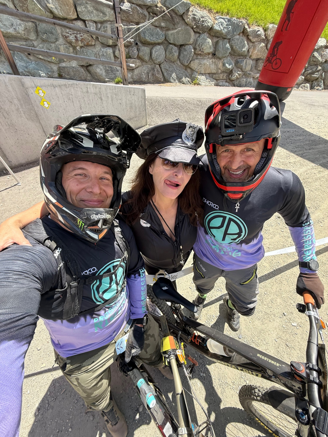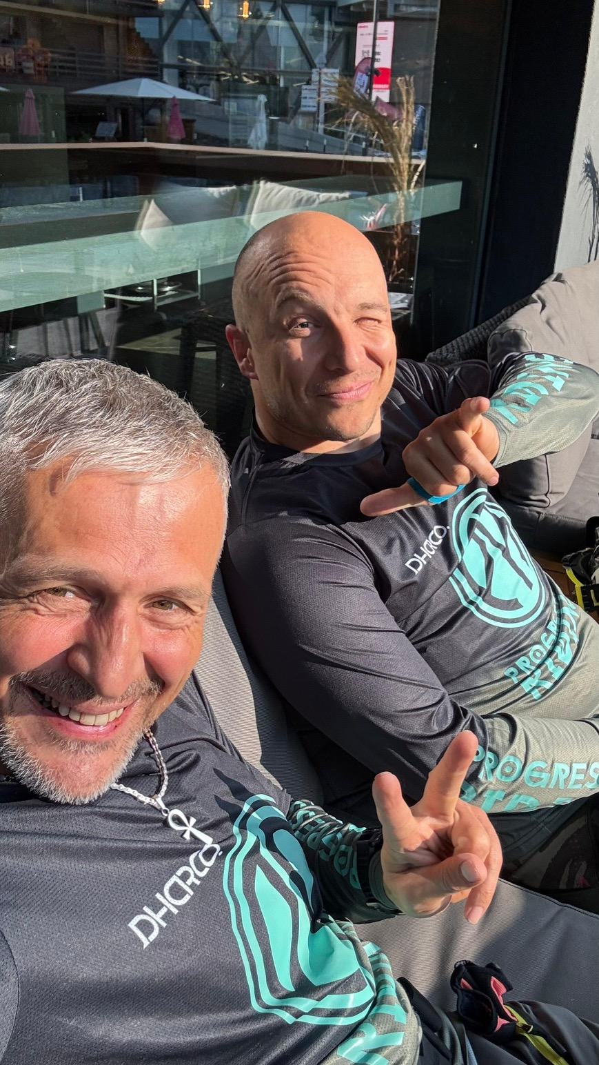 Uvítací deň nás čaká 6 RZet. Po štarte lanovkami hore a zahrievacia 1. RZeta je ľahké flow s klopenkami. Starosta mal pocit, že mu to vôbec nešlo, ale bereme si odtiaľ hneď prvý flek v kategorii. Potom nás už čaká došlap po vlastných do necelých 2700 metrov nad morom, aby sme sa hneď otestovali v dvoch kamenitých RZetách. Switchbacky, rýchlá palba, voda a v hlave dilema medzi max speed vs. nerozbit si bike hned prvý deň. Ono predsalen čakajú nás 3 dni a musí vydržat materiál aj my. V trojke som si v jednej krizovke skoro nainštaloval smrť, ale ustál som to. To sa bohužial nedá povedať o iných závodníkoch. Ten deň letel vrtuľník snáď 5x a niektoré RZty boli pozastavené na viac než hodinu. Bohužial aj jedna česká dvojica mínus. Zlomené zápästie. Tak prajeme rýchle uzdravenie.