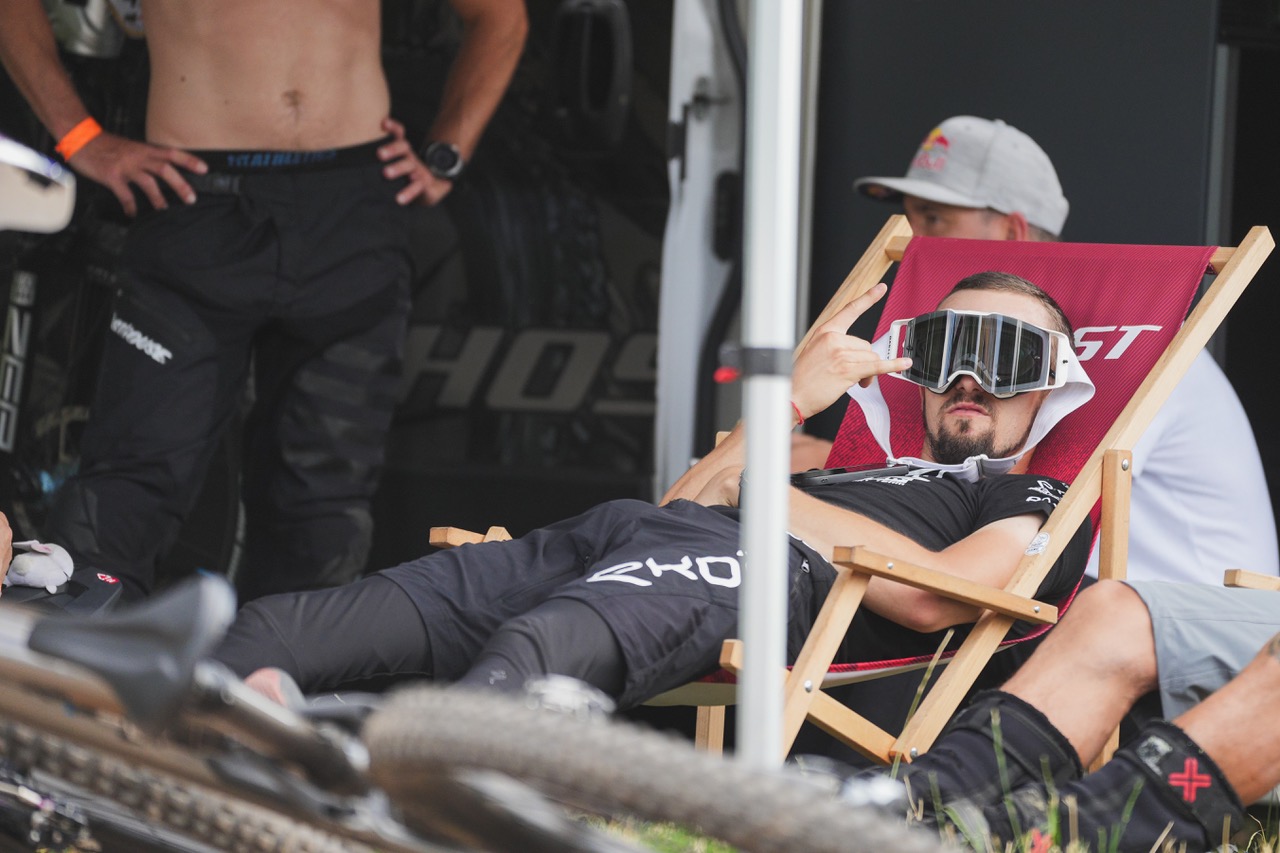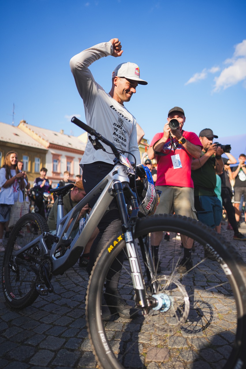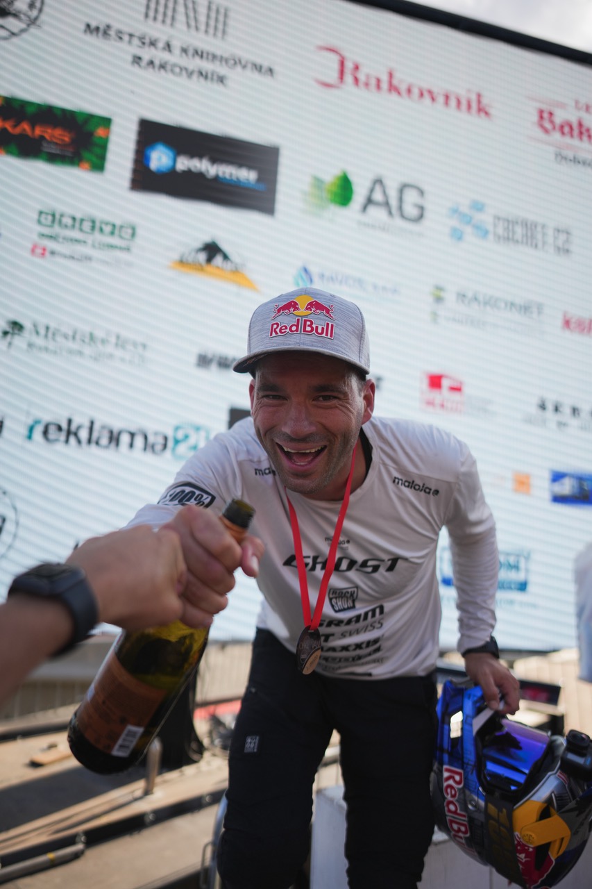 "Rozhodl jsem se jít do risku a trochu jsem si chtěl udělat výzvu. Jel jsem na úplně novým Ghost Poucha, což je bike, který jsme ladili na ty největší sjezdy Red Bull Cerro Abajo, velké zdvihy, pevné komponenty... na tuto trať bych zvolil asi lehčí a rychlejší kolo, ale to by nebyla výzva. Chtěl jsem si ho už konečně vyzkoušet i na závodech. A i na takové jednodušší trati ukázal, že to má v sobě. V kombinaci se systémem Flight Attendant to byla totální pecka a kolo letělo perfektně."