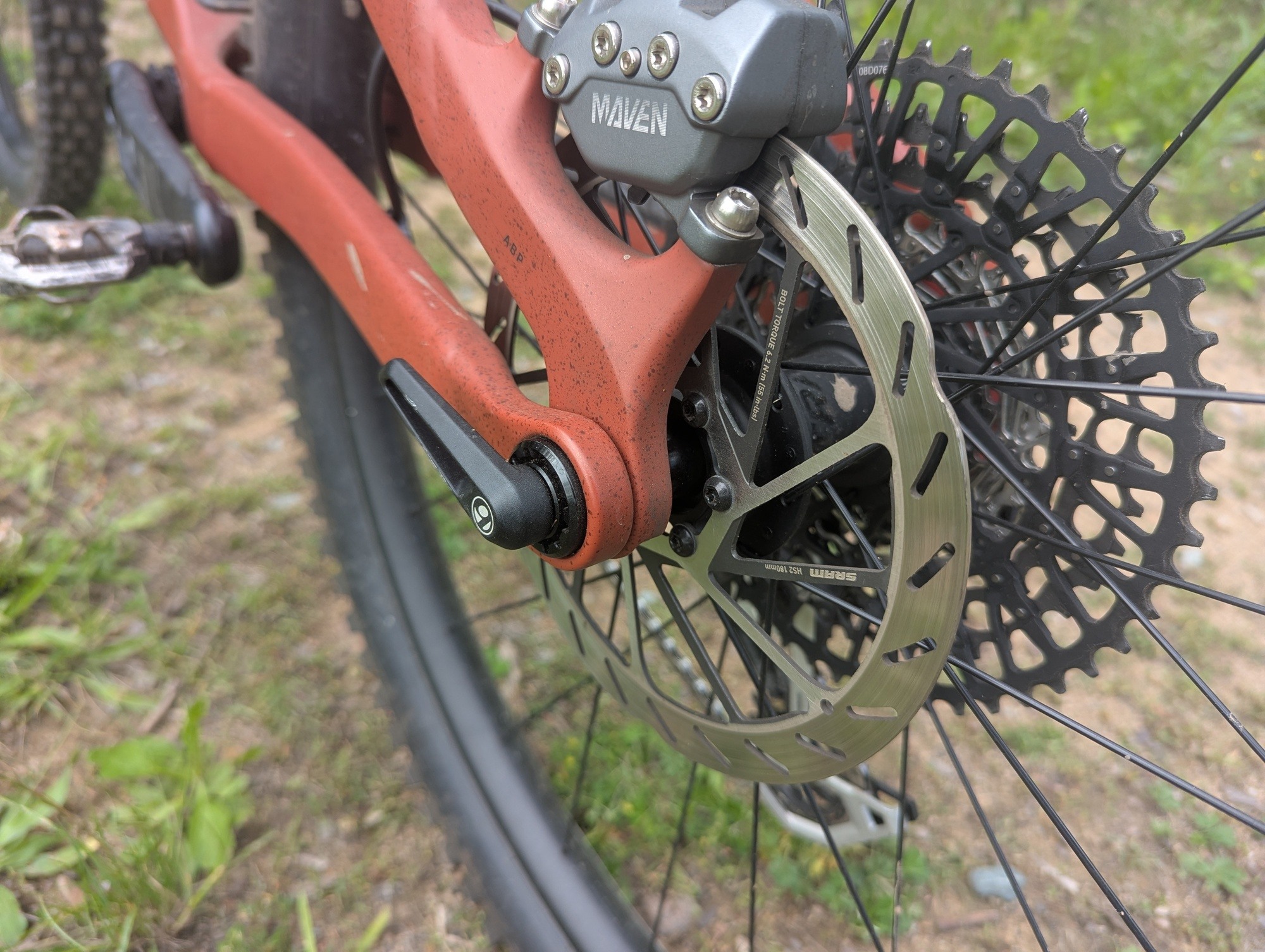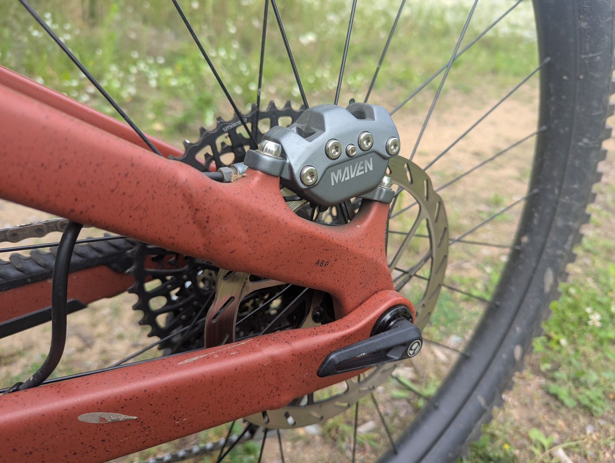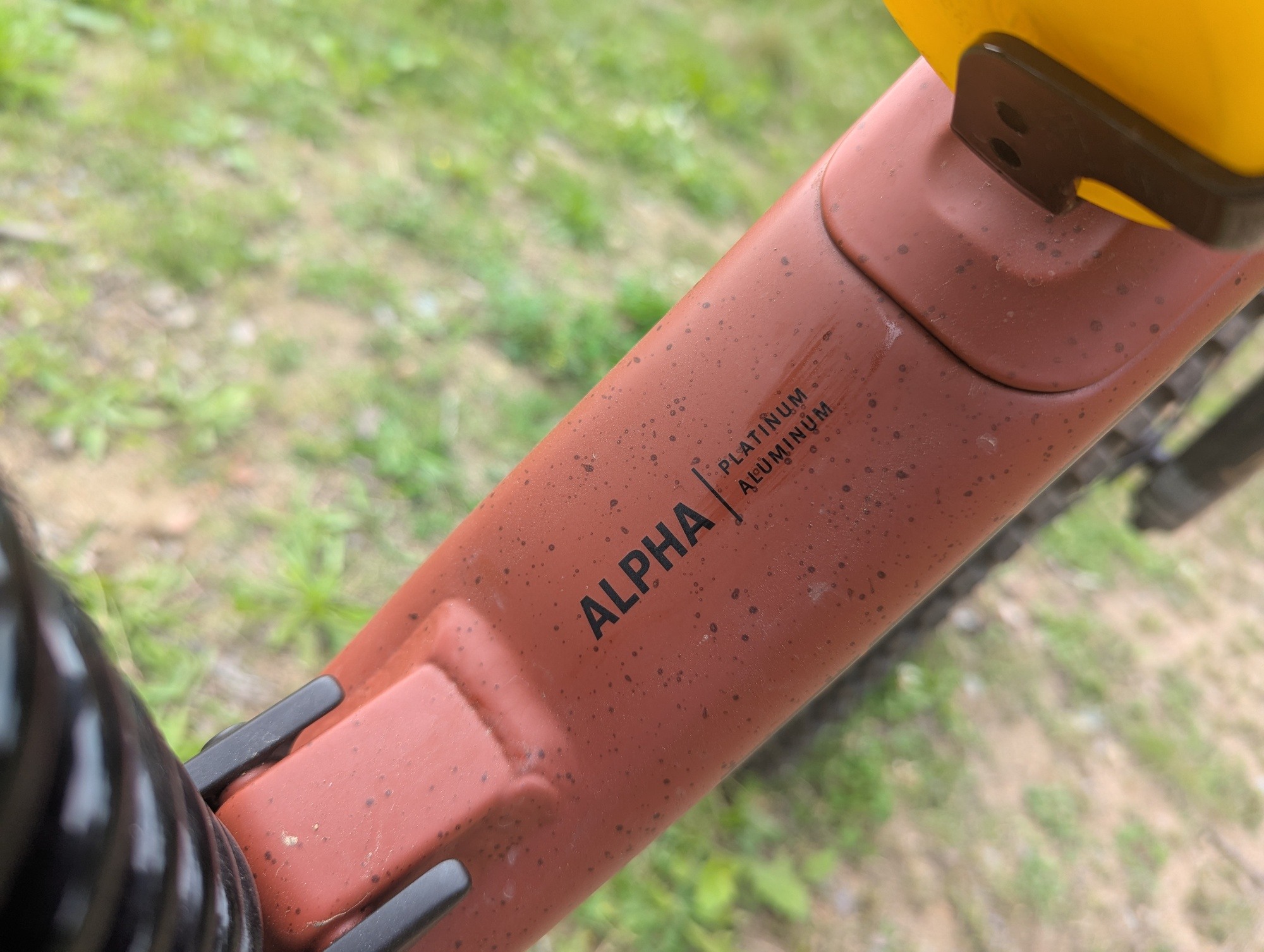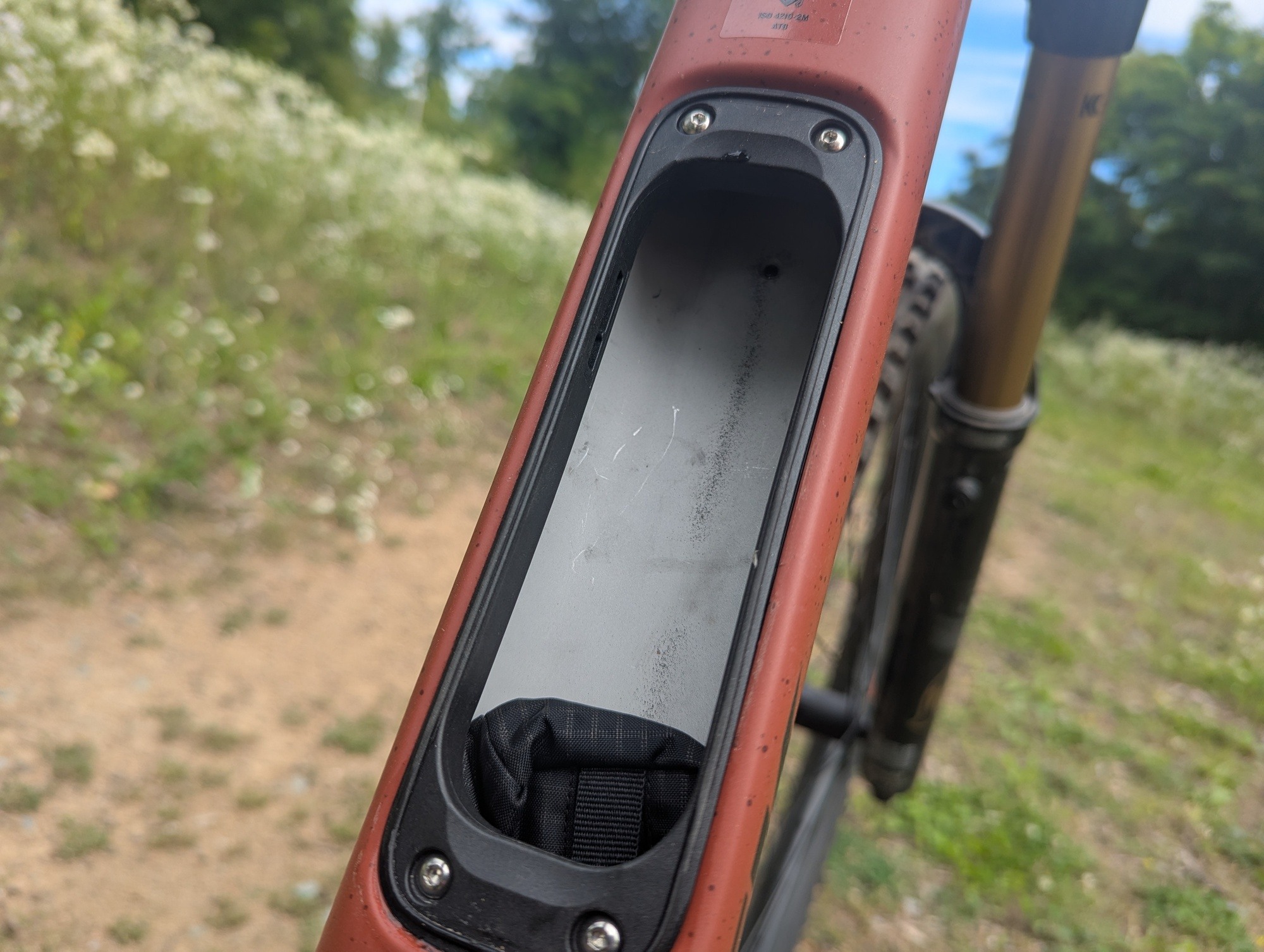 Na sedlových vzpěrách chybí můstek, respektive jejich vzájemné propojení. Obával jsem se vlivu na tuhost, ale moje obavy byly zbytečné. Za jízdy jsem jakoukoliv nedostatečnou tuhost nevnímal. Nicméně detailnější zkoumání vzpěr ukázalo, že k pár kontaktům se zadní pneumatikou došlo. Použít užší gumu než 2,5", k dotyku by určitě nedošlo.