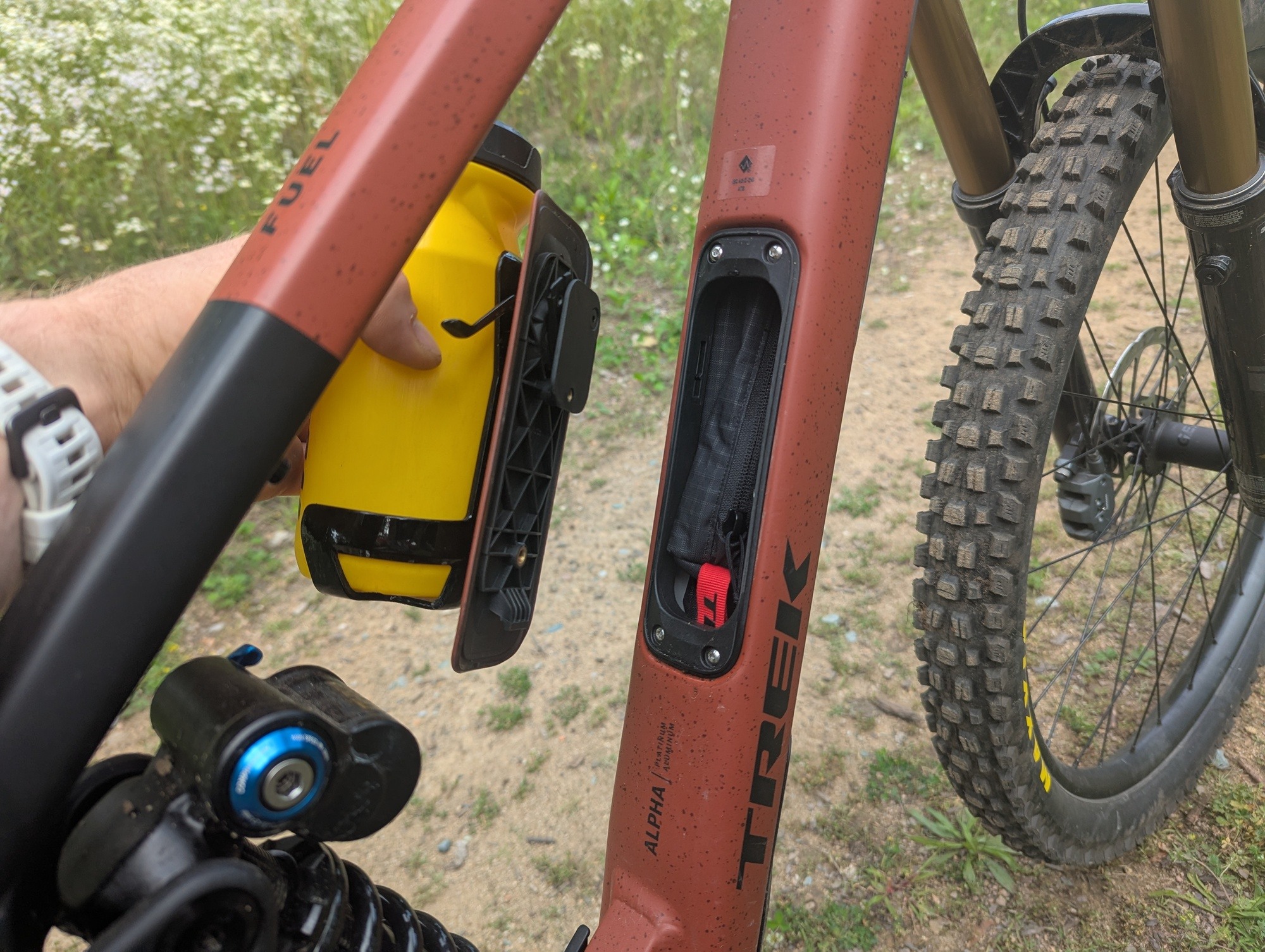 Obě verze disponují i úložným prostorem, což je u karbonových kol dost běžná záležitost, ale u hliníku jde o věc jen málokdy vídanou. Pochvalu Trek zaslouží za vnitřní vedení hadic a bovdenů, které nejsou při pohledu do útrob úložného prostoru vidět. Vkládání i vytahování dvojice taštiček jde snadno.