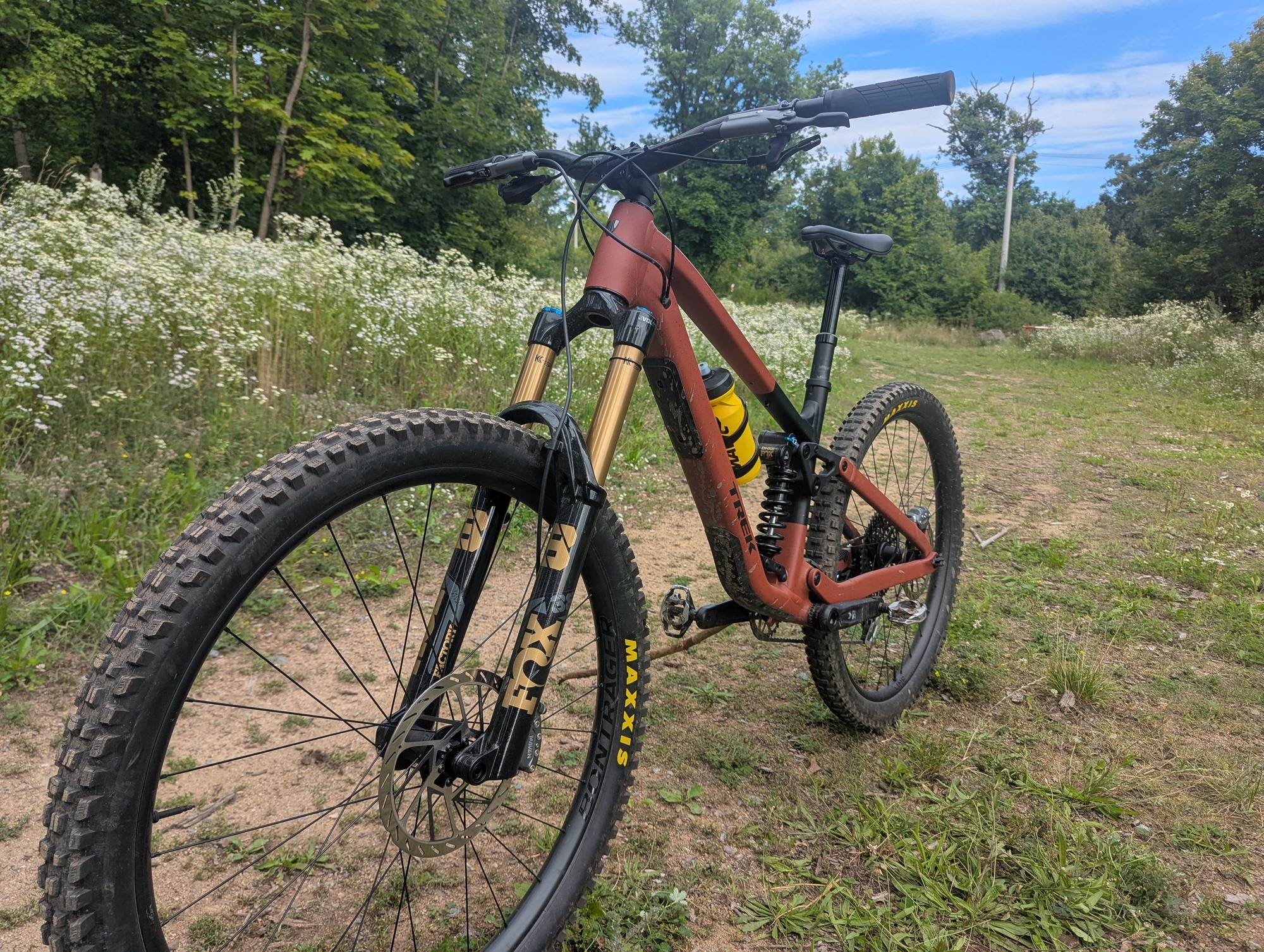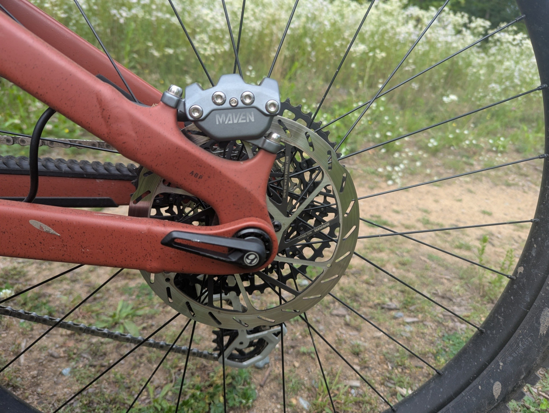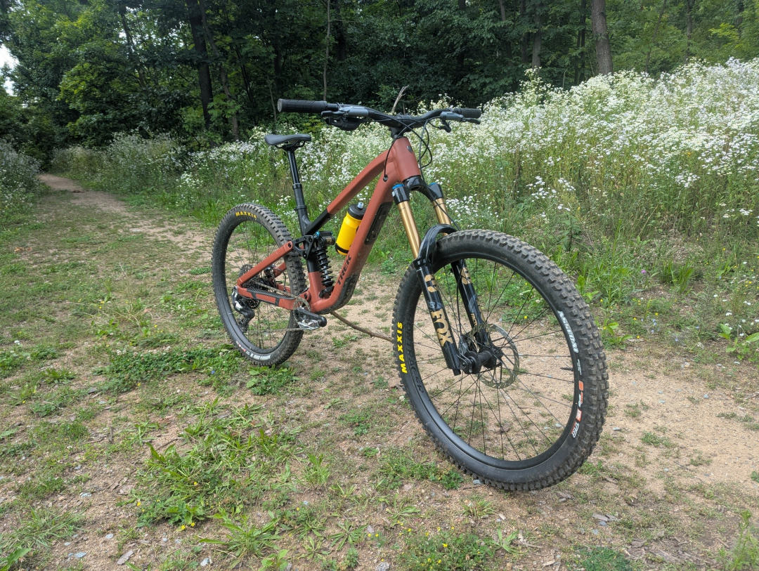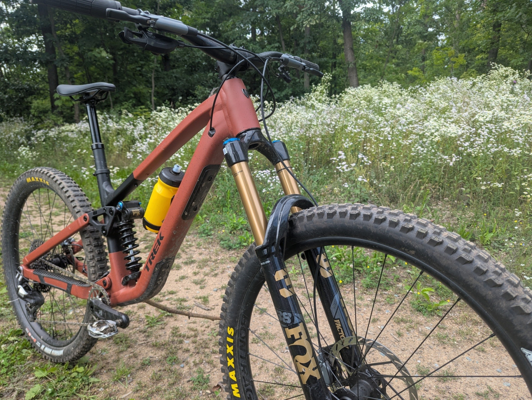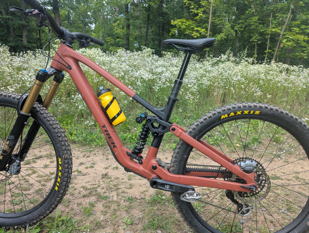 Ačkoliv kolo disponuje rámem z "pouze" hliníkové slitiny, co se týče osazení, je těžké mu v komponentové skladbě něco vytknout. Dobře složený balíček se skládá z top odpružení Fox, vidlice 38 Factory si neskutečně rozumí s pružinovým tlumičem Fox DHX2. Doplněn je mechanickým řazením SRAM Eagle Transmission, brzdami Maven Bronze, výplety Bontrager Line Comp 30 obutými do plášťů Maxxis Assegai a Minion DHR 2. To vše doplňuje teleskopka Bontrager Line Dropper s 200mm zdvihem. To vše za 147 990 Kč.