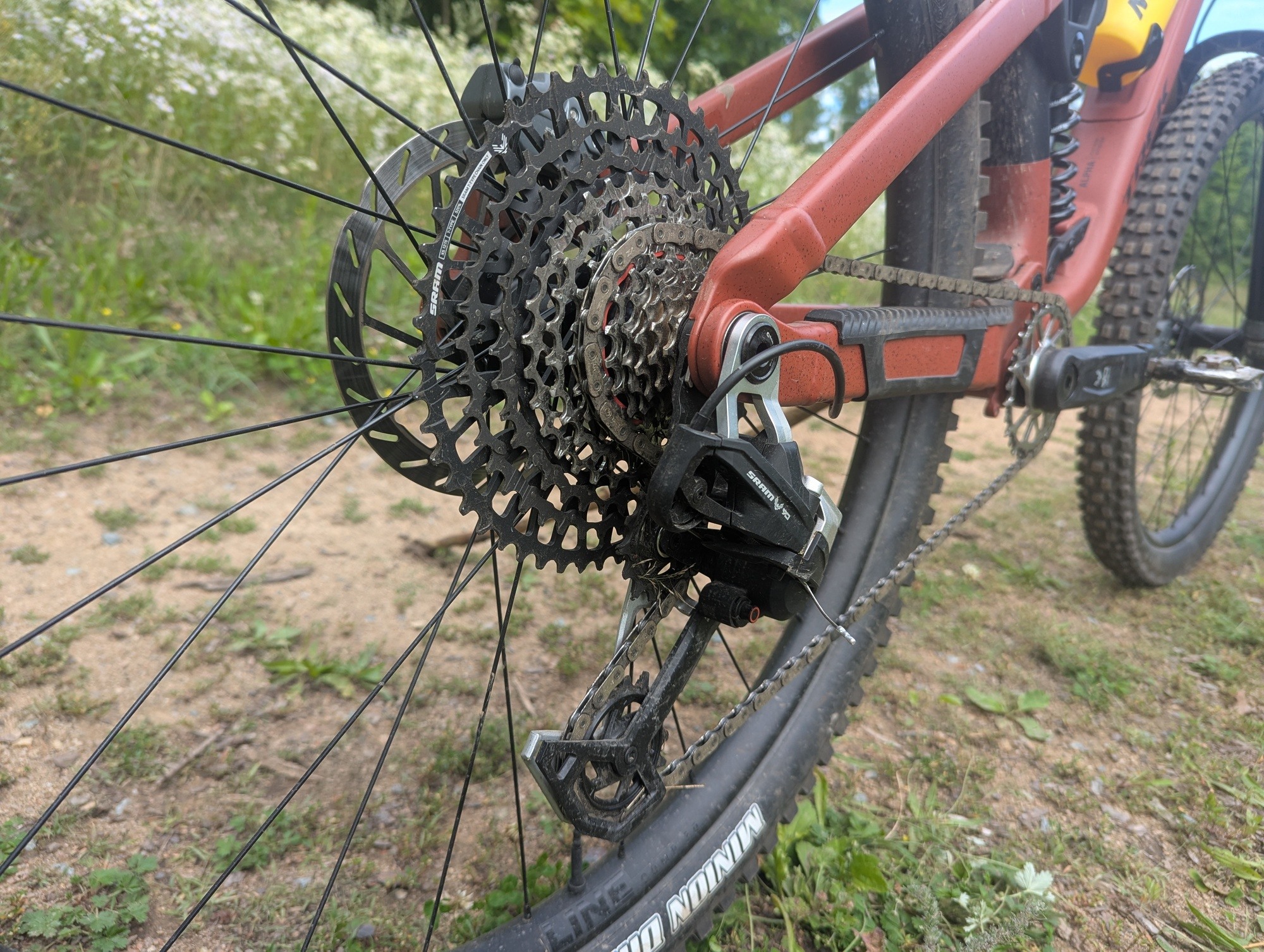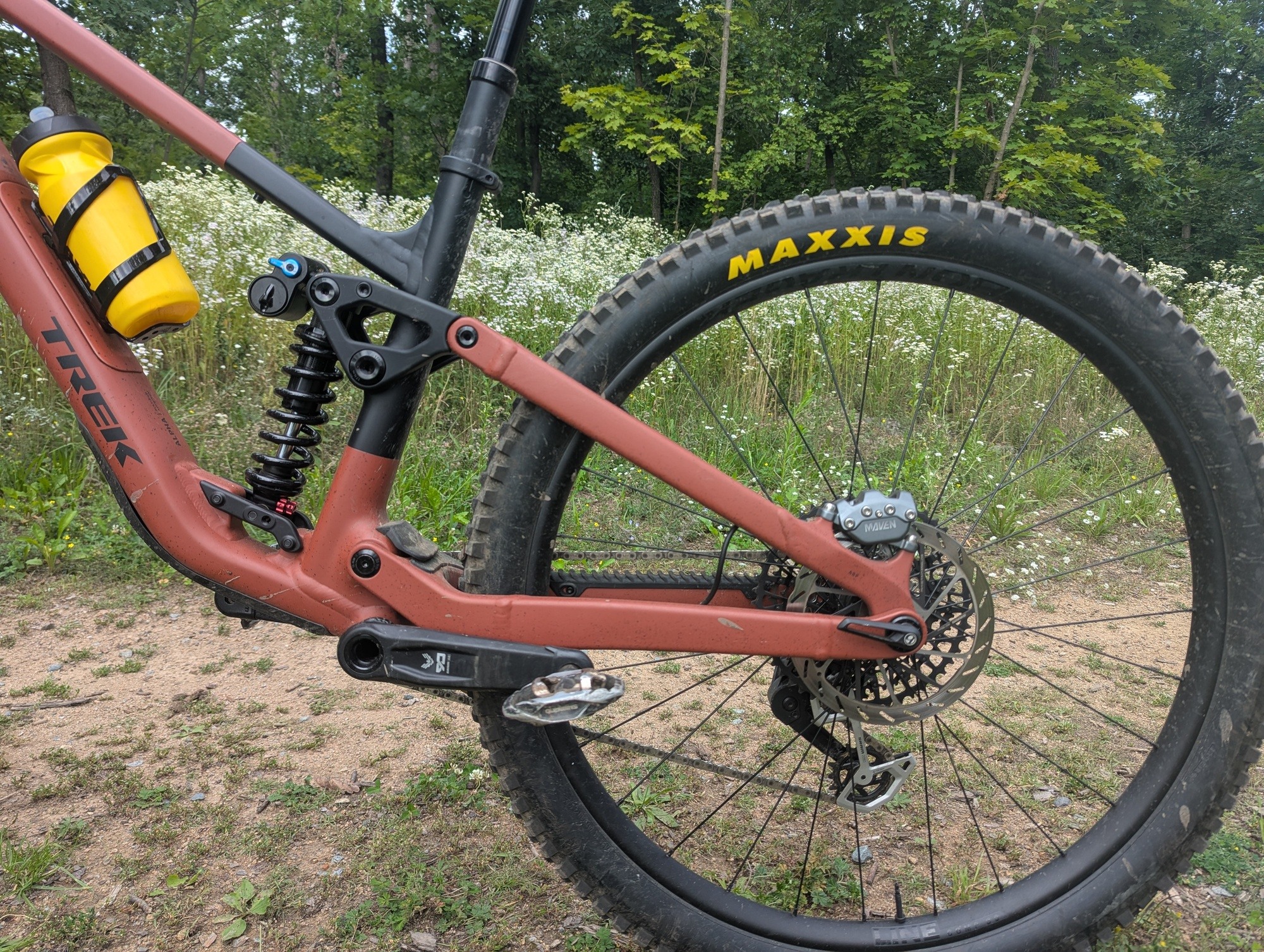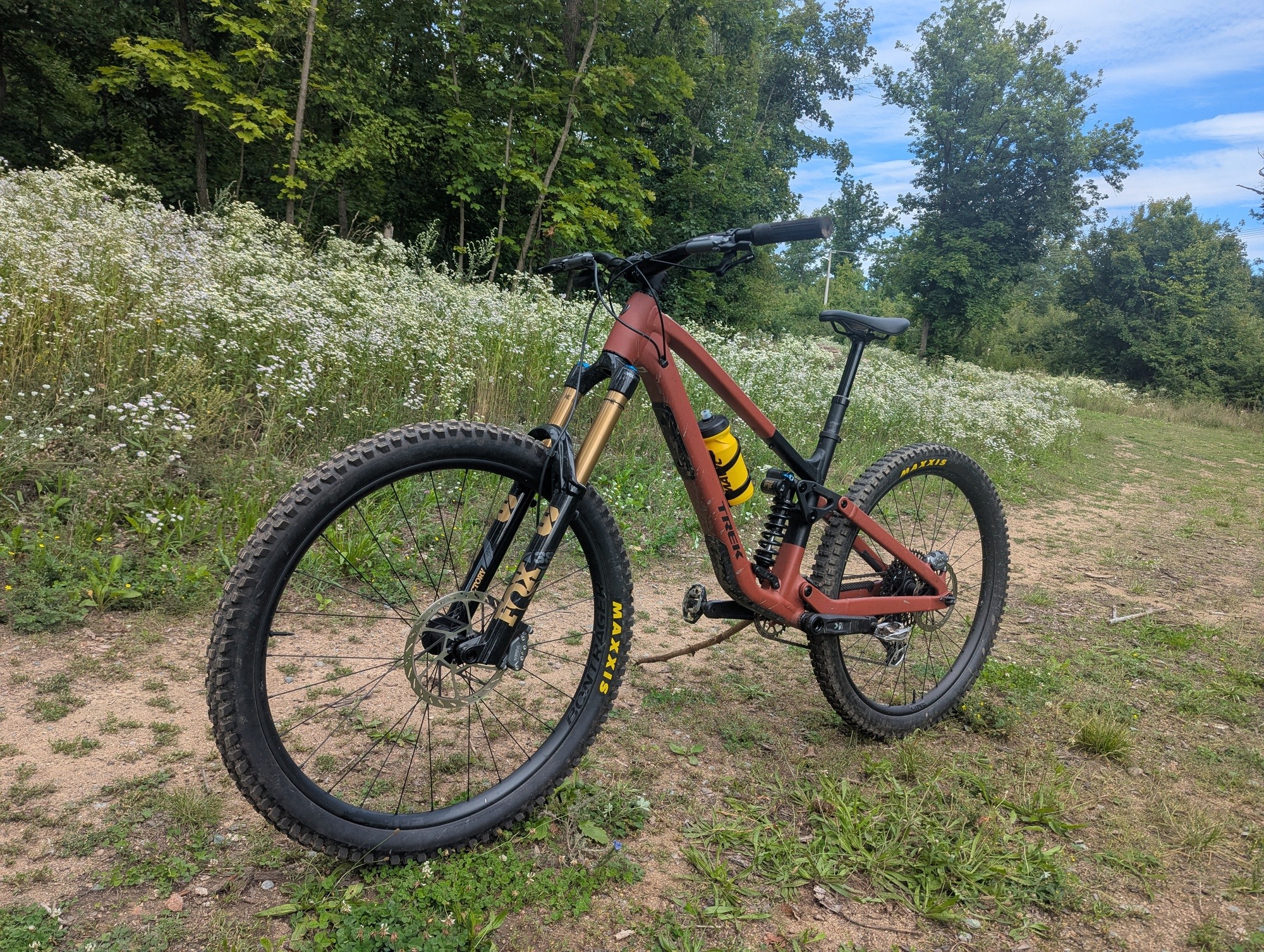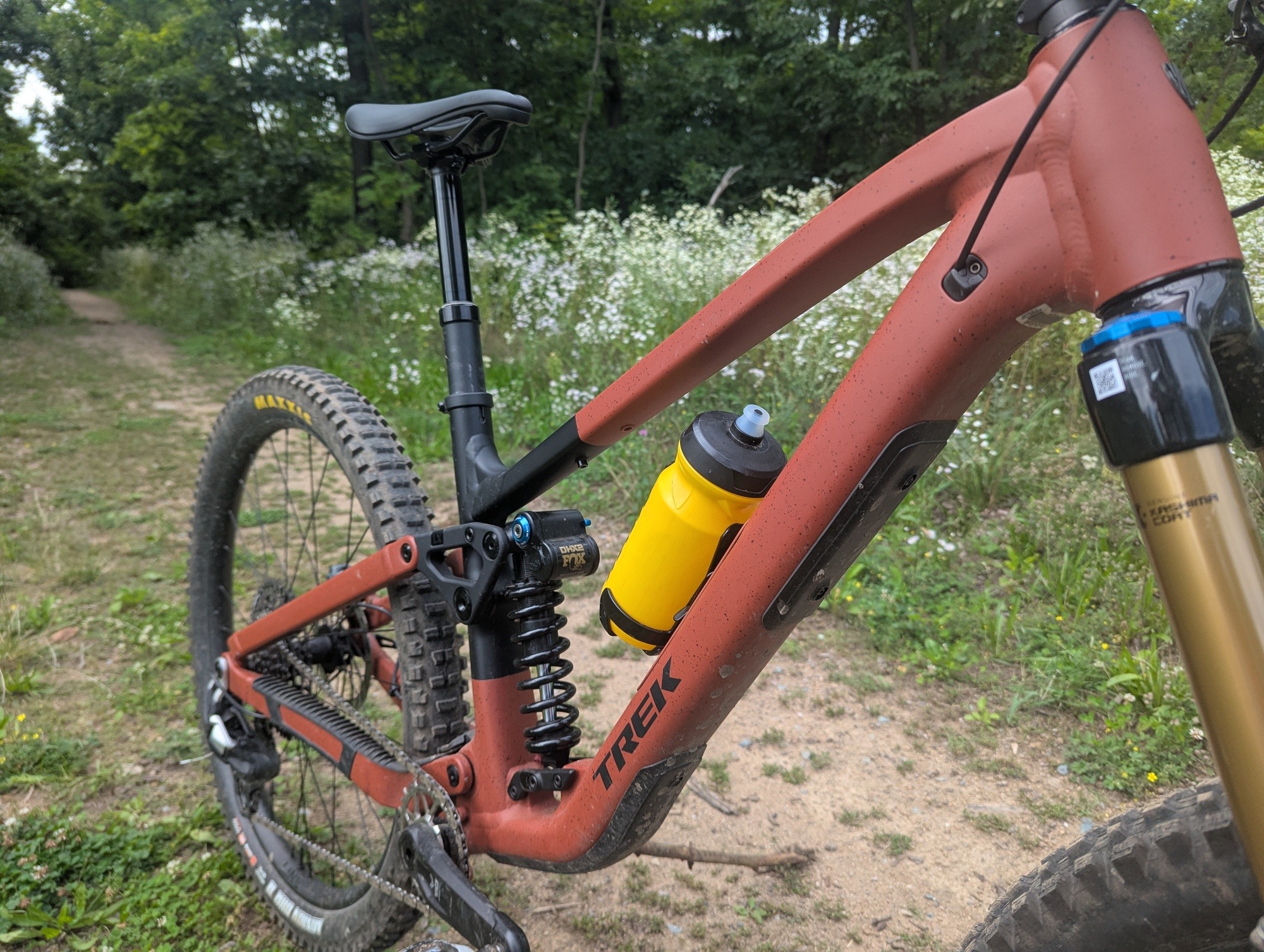 Ačkoliv kolo disponuje rámem z "pouze" hliníkové slitiny, co se týče osazení, je těžké mu v komponentové skladbě něco vytknout. Dobře složený balíček se skládá z top odpružení Fox, vidlice 38 Factory si neskutečně rozumí s pružinovým tlumičem Fox DHX2. Doplněn je mechanickým řazením SRAM Eagle Transmission, brzdami Maven Bronze, výplety Bontrager Line Comp 30 obutými do plášťů Maxxis Assegai a Minion DHR 2. To vše doplňuje teleskopka Bontrager Line Dropper s 200mm zdvihem. To vše za 147 990 Kč.