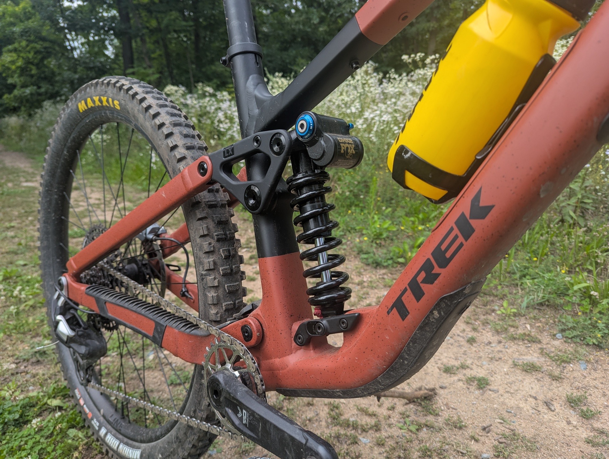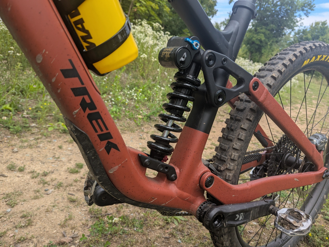 Systém je dostatečně aktivní při brzdění, dostatečně imunní vůči pohupování při šlapání a má dostatečnou oporu ve středu zdvihu. Díky možnosti úpravy pozice uchycení spodního čepu tlumiče lze na novém Fuelu ladit progresivitu chodu. Nicméně i v méně progresivní pozici jsem s pružinovým tlumičem nepociťoval nedostatek progrese.