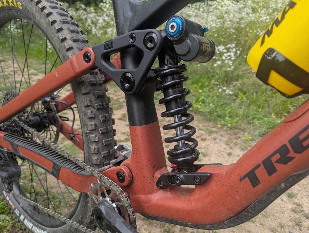 Jak dokázal Trek na jednom rámu postavit tři různá kola? Poměrně jednoduše, pomocí odlišného přepákování a různého unašeče spodního čepu. Když se k tomu přidá vidlice a tlumič s odlišným zdvihem, u verze EX kolo pracuje s kombinací 150 a 140 mm, u MX 160/150 mm a u poslední verze s označením LX dokonce 170/160 mm.Kromě samotné změny zdvihu dochází i k odlišnému naladění odpružení, které odpovídá zaměření kola.