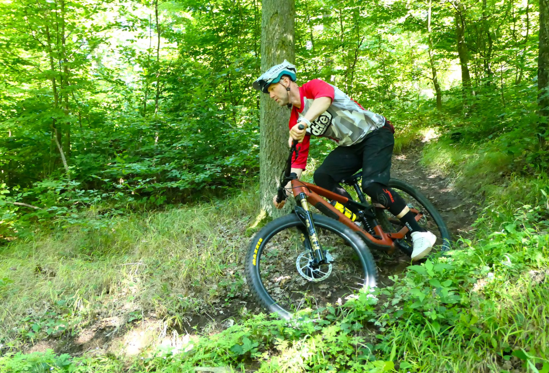 To potvrzuje i Eda, který Fuel LX vytáhl do bikeparku na Bukovku. Hladké tratě, spousta skoků, tady se LX fakt líbí.
