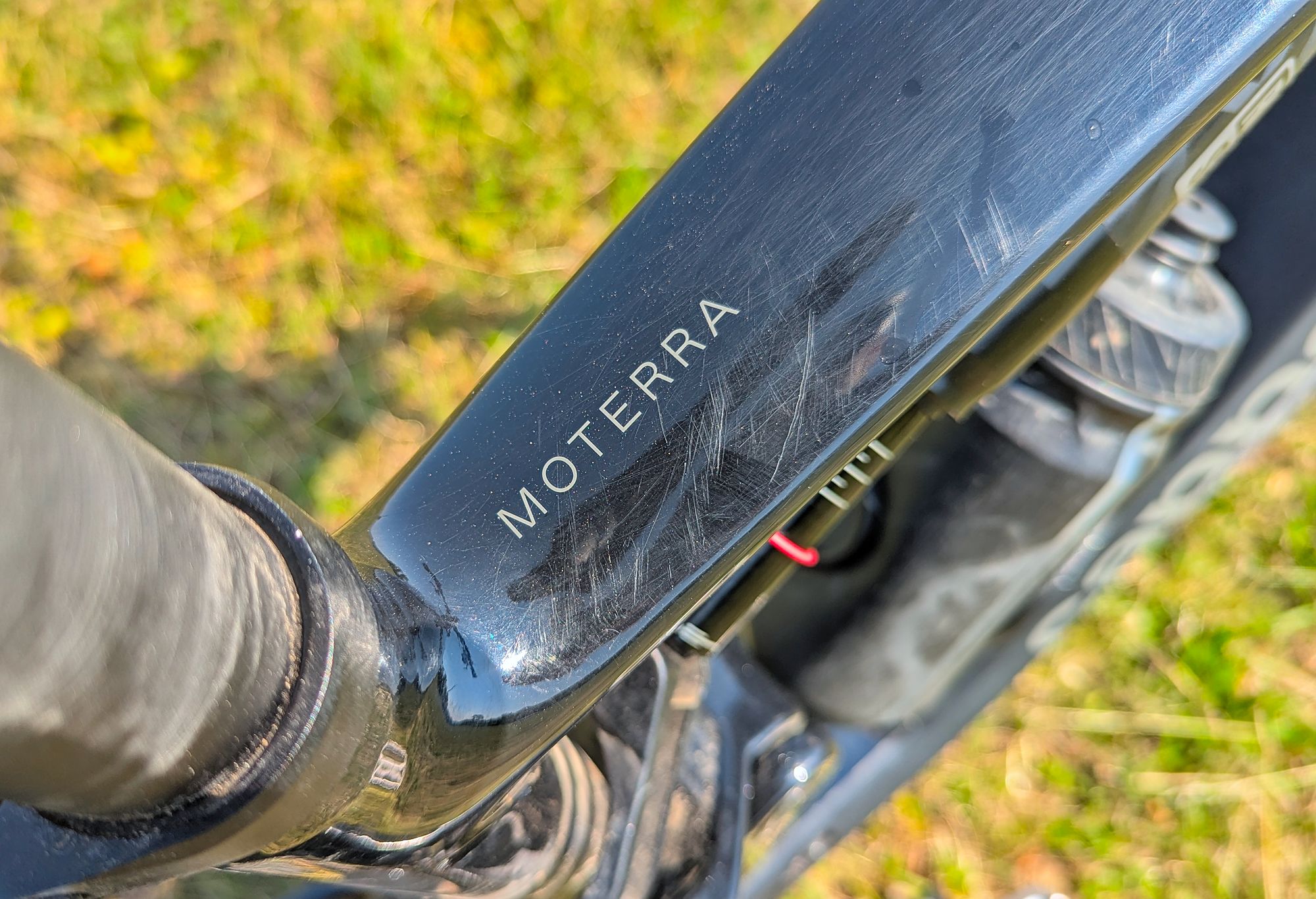 Další výtka směřuje k výšce řidítek, doba, kdy se vozila řidítka s nízký zvednutím je již pár let za námi. To však neplatí pro Moterru, ploché s 25 mm zvednutím řidítka spolu s vysokým komínem podložek pod představcem vizuálně kolo dost sráží. Mně kokpit připomíná žirafu...