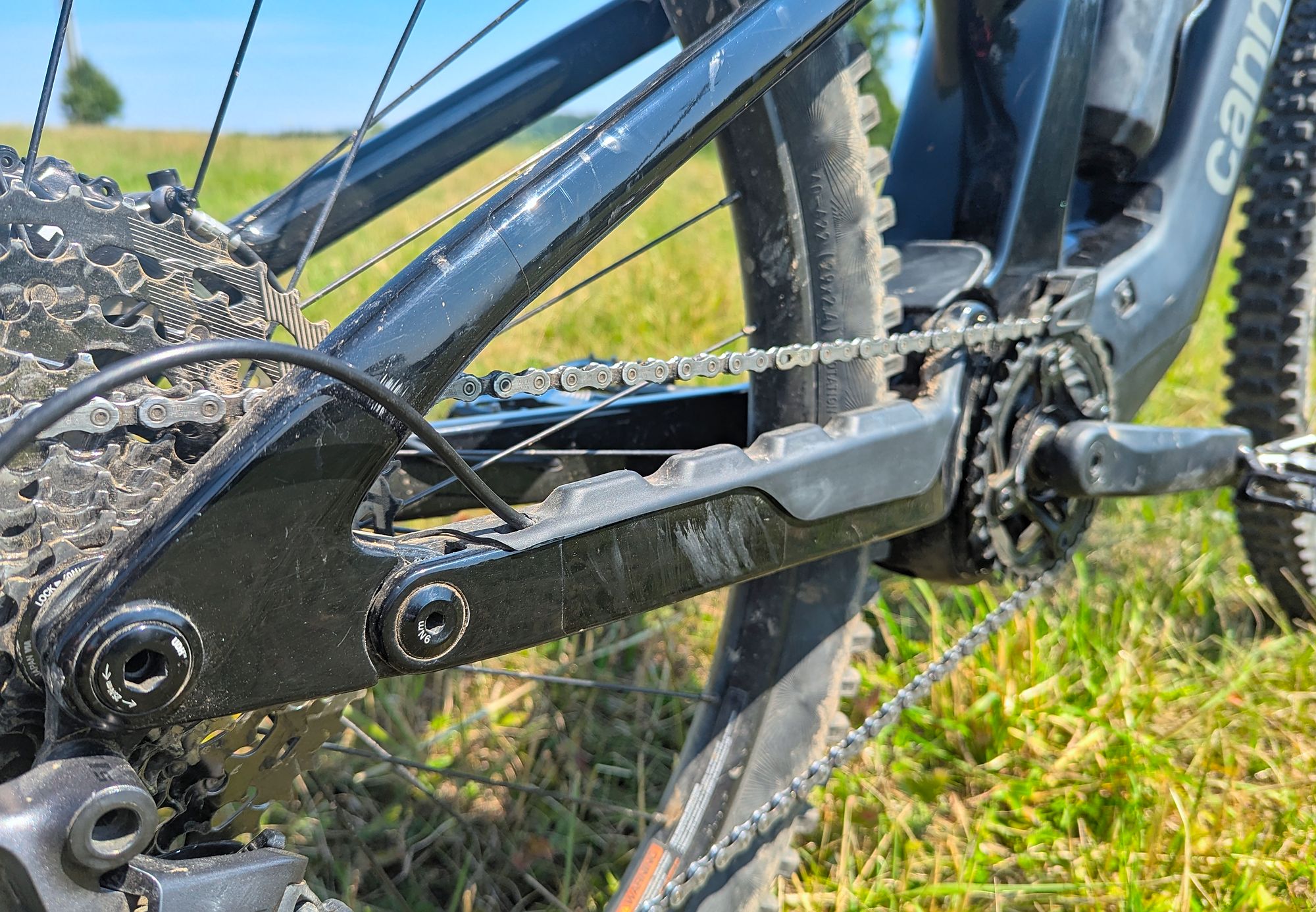 Nejnovější generace elektrokola Cannondale Moterra na rozdíl od předchozí generace disponuje celokarbonovým rámem. Použitím modifikovaného rámu spolu s karbonovou zadní stavbou dokázalo ušetřit celý 1 kg hmotnosti. Na váze kompletní kolo ukáže solidní hmotnost 24,5 kg. Každopádně, možností, kde ušetřit pár stovek gramů, najdeme na kole spoustu. Věřím, že bez zásadní investice by šla hmotnost snížit minimálně o další kilogram.
