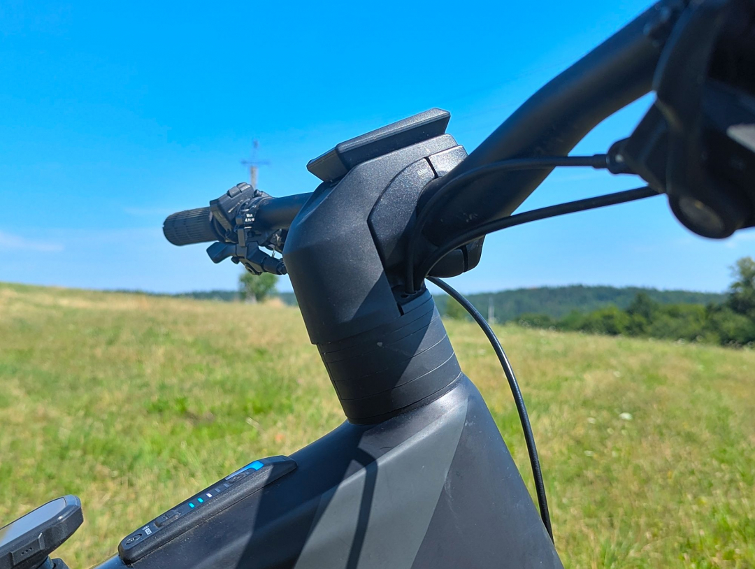 Za co ale Cannondale nezaslouží pochvalu je provedení kokpitu s integrovaným vedením i integrovaným displejem Bosch Kiox do představce. Integrace je trend, to je fakt, můžeme s tím nesouhlasit, můžeme proti tomu protestovat, ale to je tak vše. Osobně s integrací problém nemám, pokud mě jako uživatele neomezuje. A zde tomu tak je. Zvolené řešení totiž neumožňuje jednoduchou změnu výšky představce. Pro změnu je nutno zkrátit zaříznout krk vidlice, je nasnadě, že následné prodloužení již možné není...
