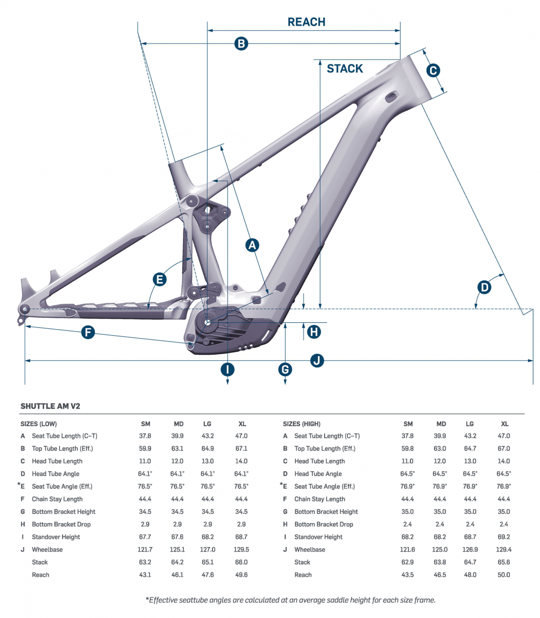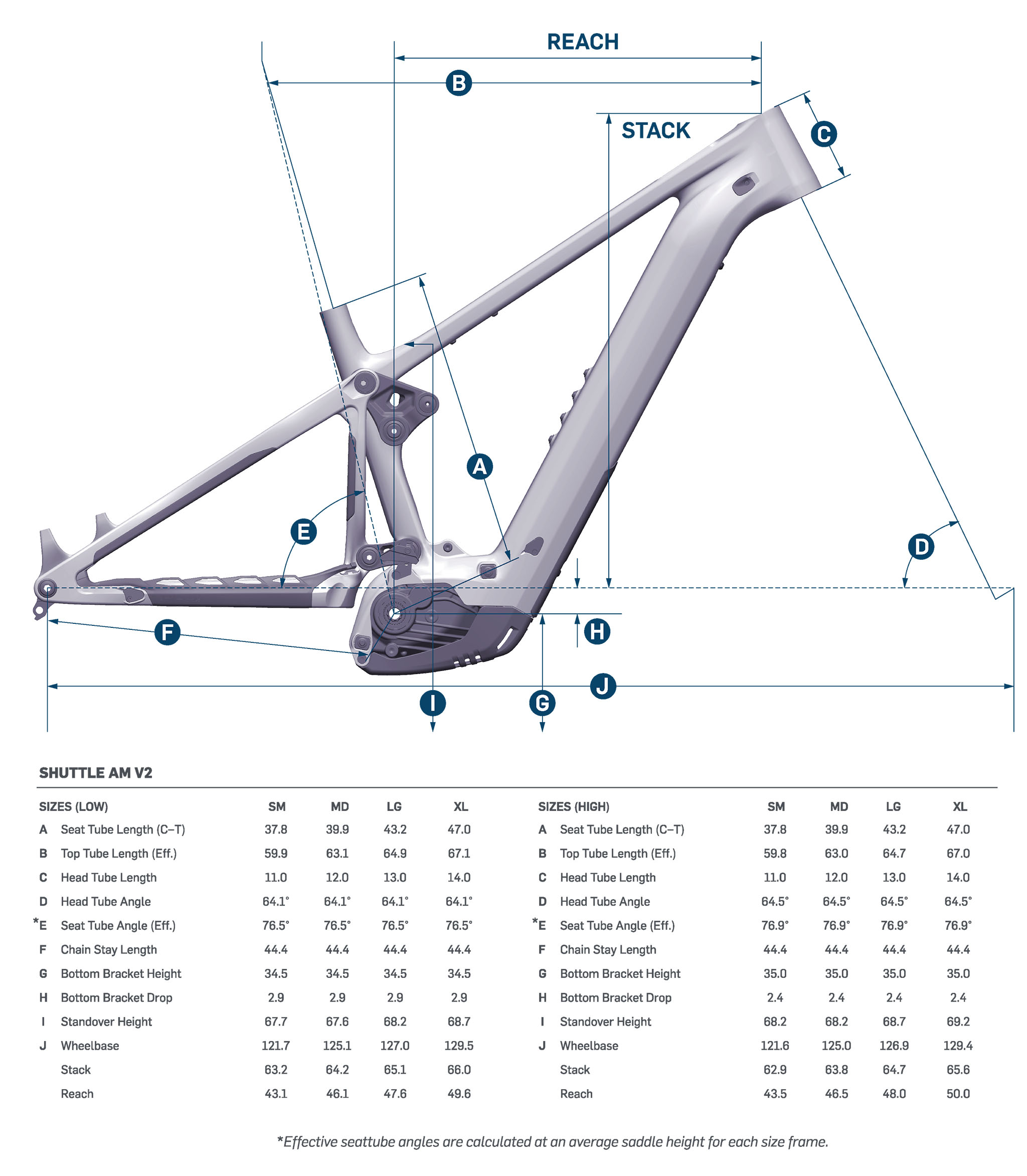 Nastavení "High" nepatrně zvedne střed a zostří úhel hlavy o 0,5 stupně. Anebo umožní použití 27,5" zadního kola beze změny geometrie. Tím je v základu 29" kolový Shuttle AM, také plně kompatibilní s konfigurací kol MX.