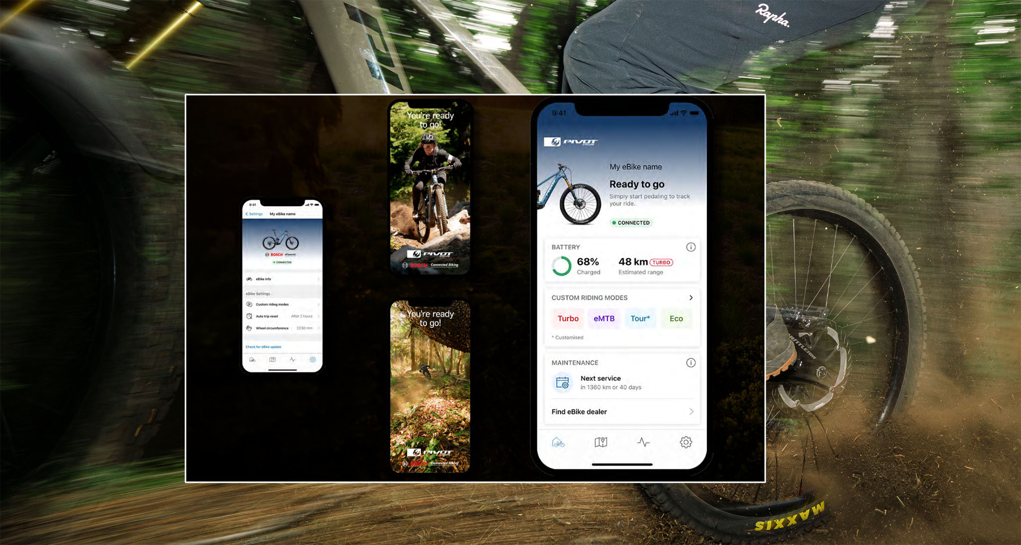 Uživatelsky přívětivá aplikace Bosch x Pivot Cycles Flow poskytuje bezproblémové připojení k elektrokolům s pohonem Bosch. Najdete v ní doporučené intervaly údržby na základě počtu najetých kilometrů, pomůže s vyhledáváním prodejce Pivot/Bosch, zobrazuje procenta nabití v reálném čase a odhadovaný dojezd a především si v ní můžete dolaďovat úrovně asistence "na míru". Současně je i vaší digitální garáží: přidejte a spravujte až šest elektrokol v jednom účtu.