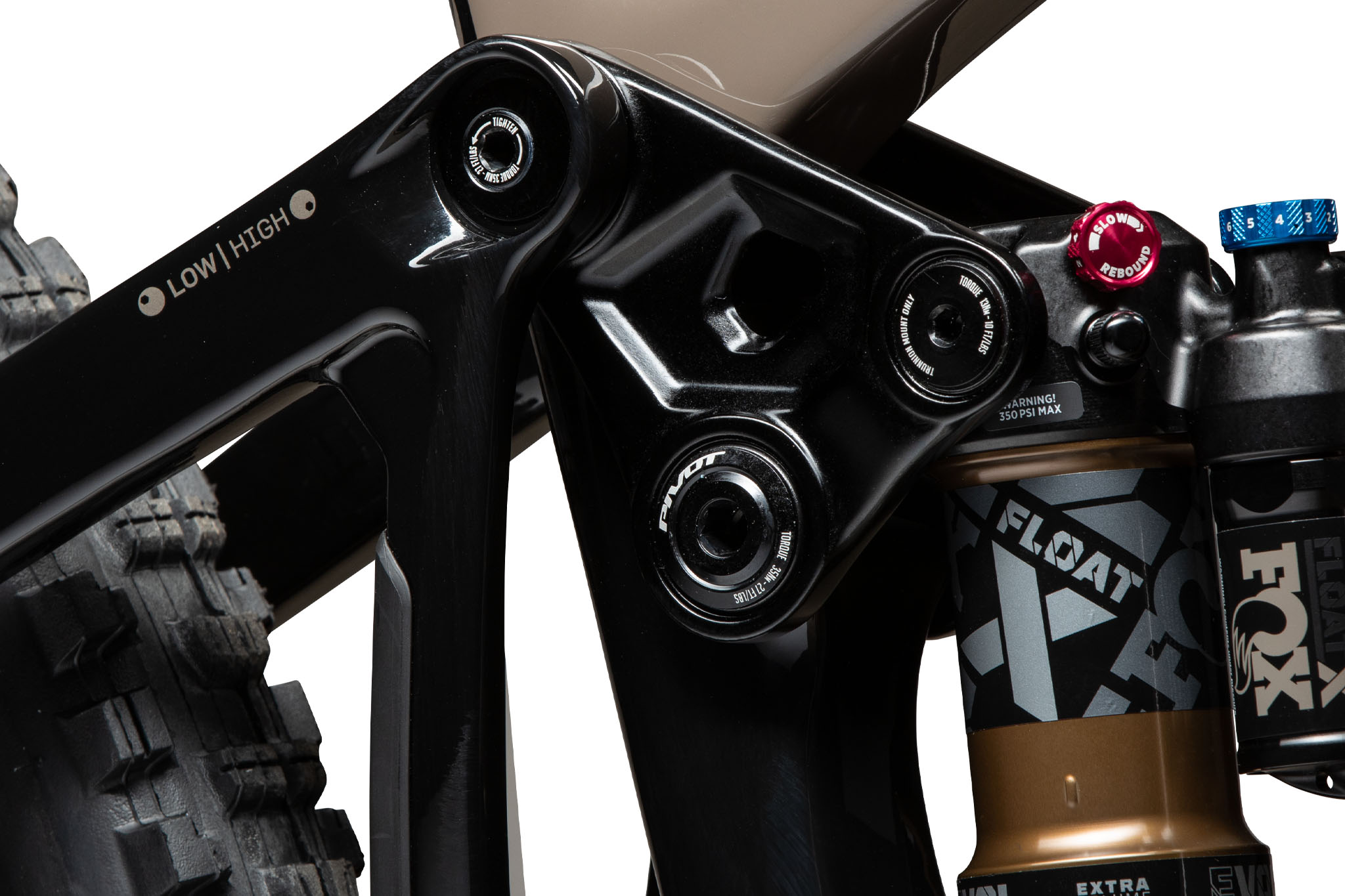 Jednoduchým otočením tohoto segmentu na horním oku tlumiče, můžete přenastavit geometrii na "High" vhodnou do technického terénu nebo "Low" pro stabilitu v maximálních rychlostech.