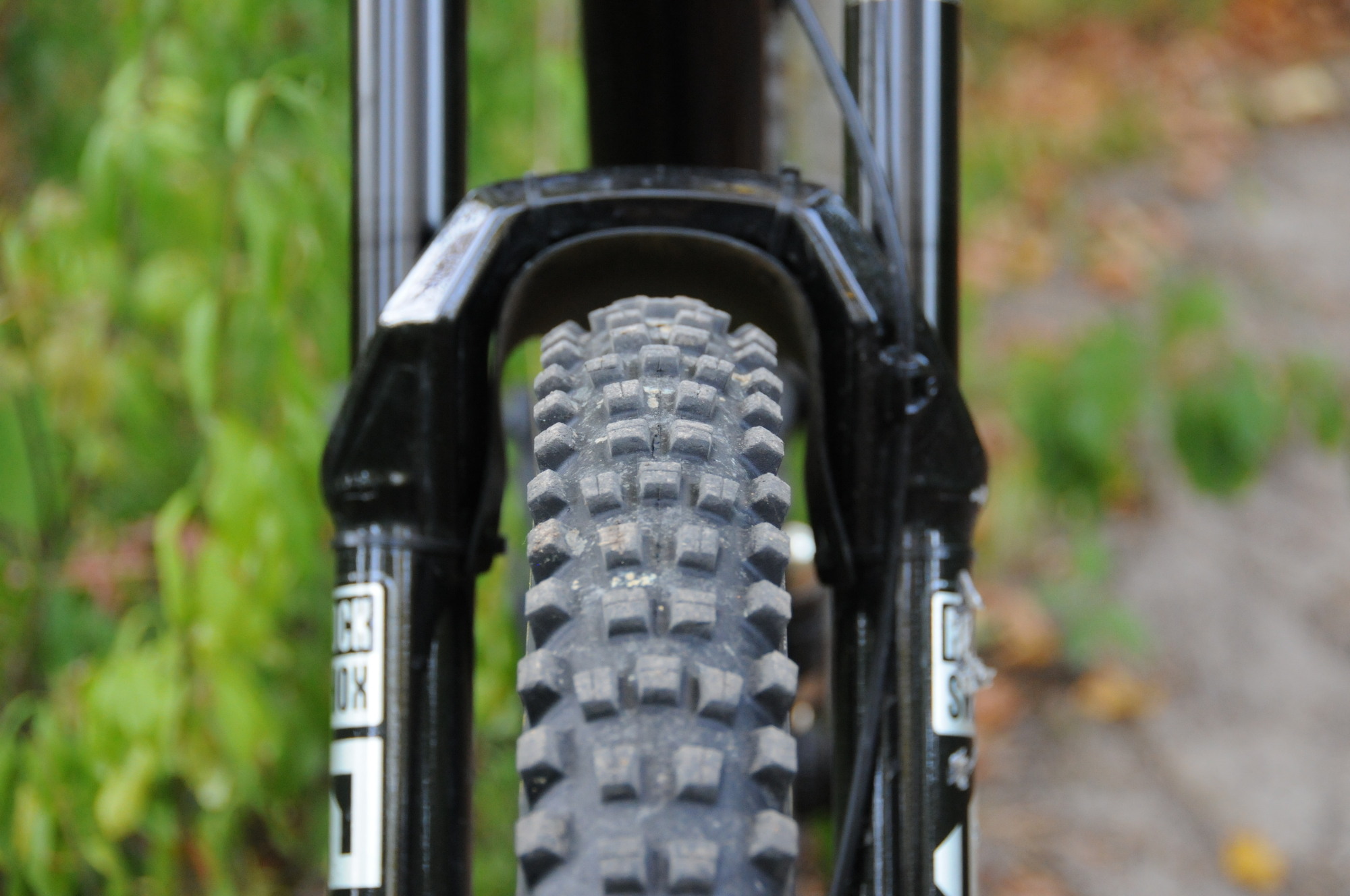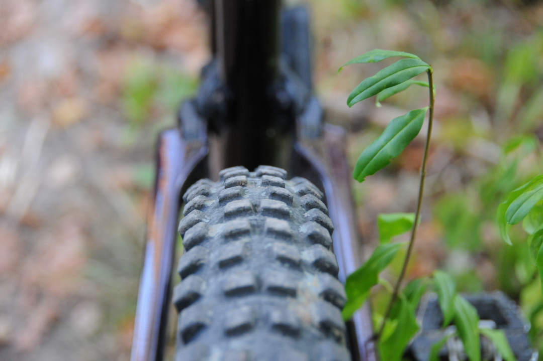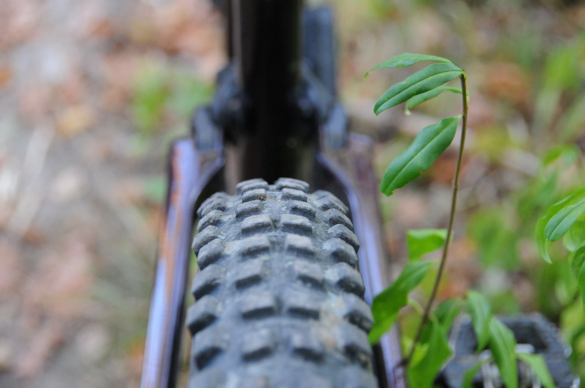 Ani 1300 gramů na jednom plášti není úplně smrtelných. Sice můj lehký trailbike oproti katalogovým informacím ztěžkl, ale né zas tak moc a taky je to holt daň za odolnou gumu. Kevlarová patka a tubeless ready jsou povinností. Ochrana pláště mezi patkami Bead to Bead a navíc zesílená vrstva pod běhounem Tread Shield jsou u těchto závodních gum standardem. A co se týče hlučnosti, tak úplně v pohodě. Šířka 2,4 palců resp. 2,5" vzadu nedělá z kola traktor, ale spíš si jen tak vrní.