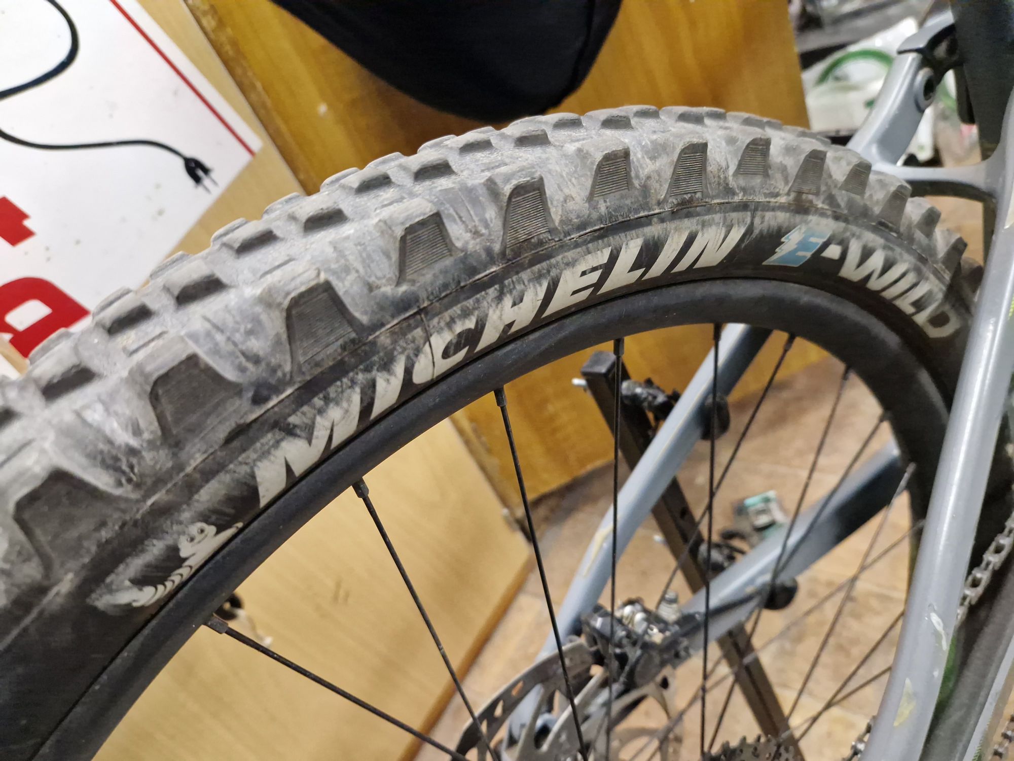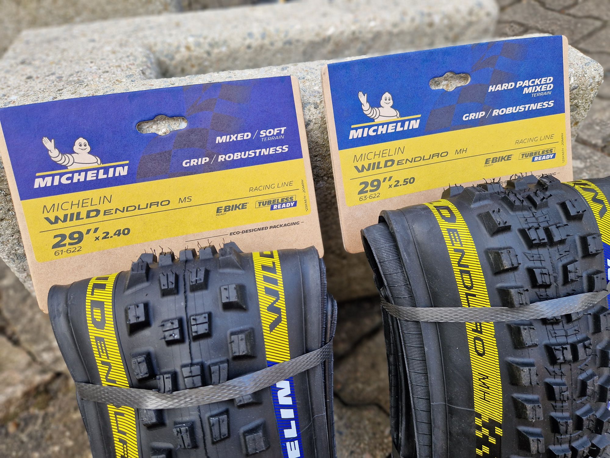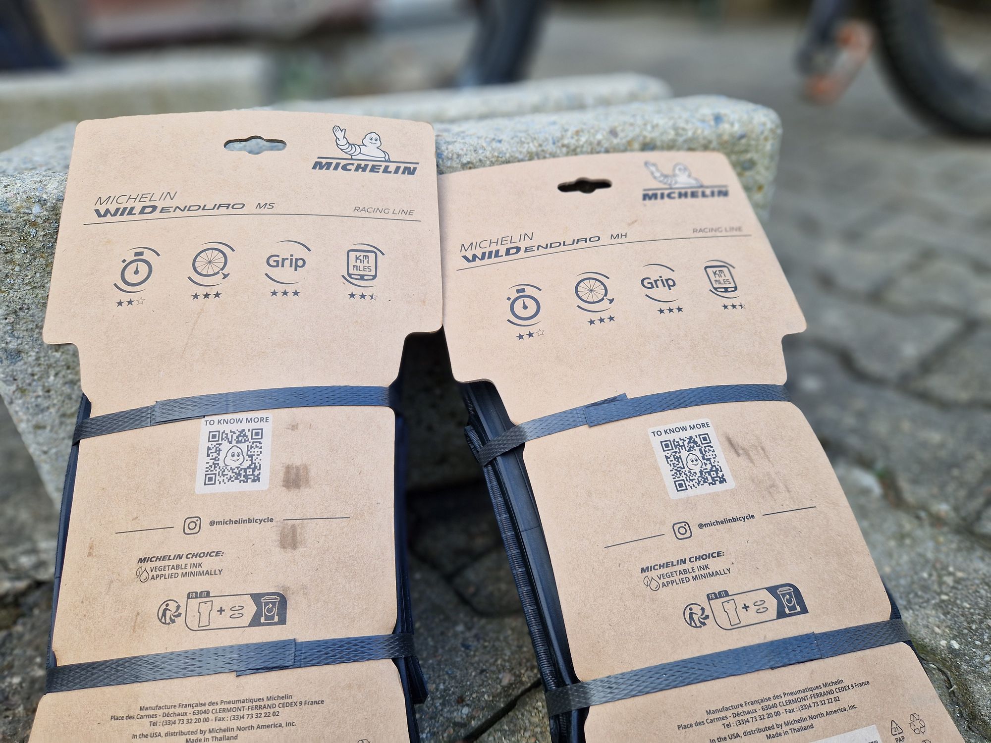 Na začátku roku 2022 jsem na e-bika nahodil tehdejší novinku Michelin e-WILD a vydržela na kole téměř tři sezóny. Na kole, které jezdili dva lidi a které kromě terénu najezdilo i hodně po asfaltových cyklostezkách, protože sloužilo jako rychlý dopravní prostředek do práce. Micheliny tedy prošly dlouhým a tvrdým testem a obstály. Takže když jsem nedávno vybíral nové obutí na bio-bike, nebylo moc co řešit. Michelin Wild Enduro Racing Line v provedení MS (měkčí směs) dopředu a MH (tvrdší) dozadu. Aktuálně mají najeto okolo čtyř set kilometrů a tady je pár mých postřehů.
