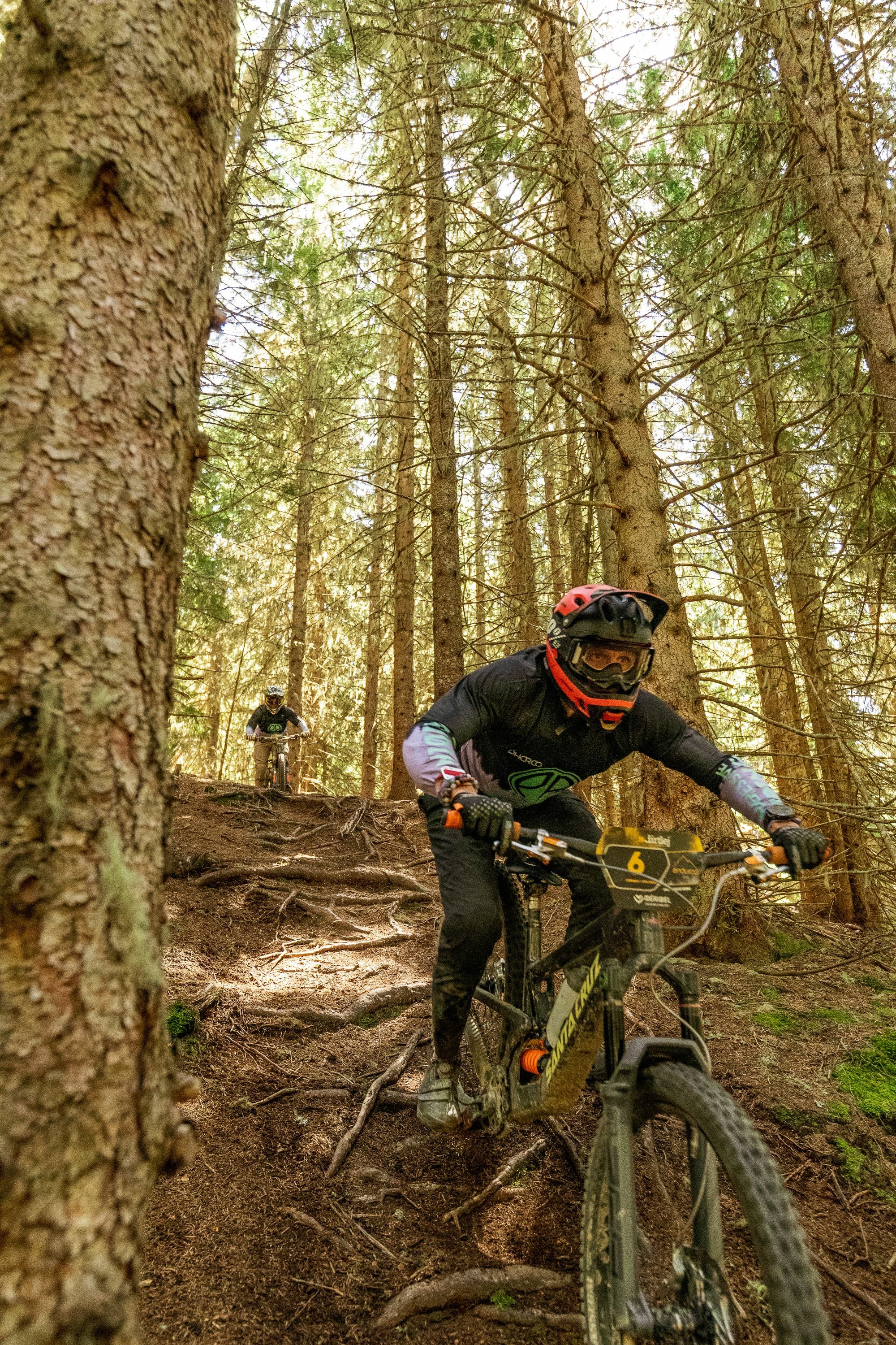 Predposlednú bikeparkovú RZetu som zase potialhol ja, záverečnú 8mičku som nechal na Zbynďu. Trail je značený ako čierny s dvoma pluskami - downhill. Takže najväčšia nálož na ruky a techniku za celý závod. Tu bol samozrejme Zbynďa ako doma a chrochtal si spokojnosťou. Ja som sa za ním povozil v jeho stopách a do cieľa prichádzame cez miestny pumptrack. Vydatný deň, stálo nás to veľa energie ale výsledky sľubujú zase prvé miesto. Pôvodne sme odskočili o 30 sekúnd, ale po anulácii 6tky máme po dvoch dňoch náskok iba 20 sekúnd. V alpskom endure je to o sviští prd. Takže konkurencia tesná.