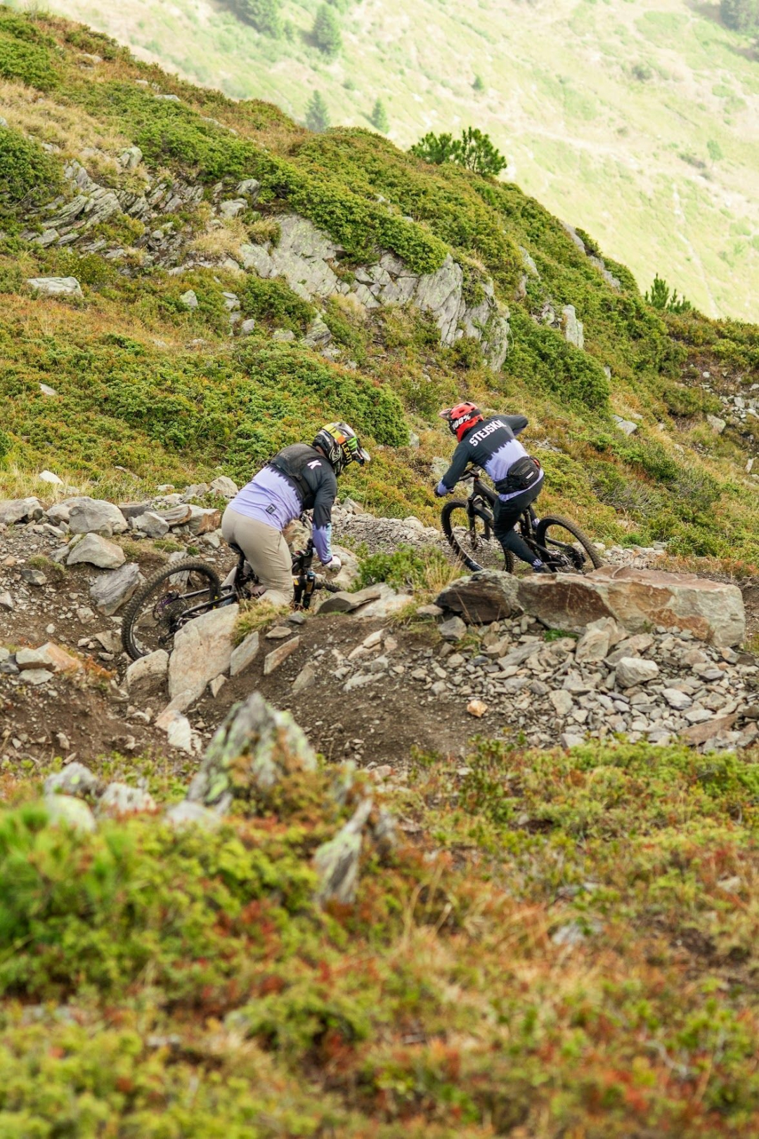 Čaká nás zjazd do Courchevel, polovica krásnym trailom (bohužiaľ nezávodne), aby nás zase 2 lanovky vytiahli až na Sommet de la Saulire do 2738 m n.m. Kúsok dole po šotoline a tam nás už čaká prvá RZeta, ktorú na základe minuloročnej overenej stratégie vedie Zbynďa. Je to kamenitý trail, náročný na techniku a koncentráciu. Dvojky sa ujímam ja a mám pocit, že mi to nejde. On to teda nie je len pocit. Pri jednej ostrej zatáčke absolvujem rýchly pád, ale restartujem sa zase ako v Need for Speed aby som následne mohol umierať na nedostatok kyslíku vo výšlapoch. V cieli fučím ako ježko do lístia aby som sa mohol o chvíľu odpotácať na štart trojky. Tam to dávam do rúk Zbynďovi aby som načerpal trochu mentálnej energie a vezem sa za ním. V strede trailu narazíme na turistov na e-bikoch, tak ich rýchlo zdravíme pokrikom "uhni vole" zatiaľ čo okolo nich letíme asi 50km/h. Naštastie sme ich stretli na širokej časti trailu, ináč by sme ich asi zostrelili jak Maverick nepriateľov v Top Gune.