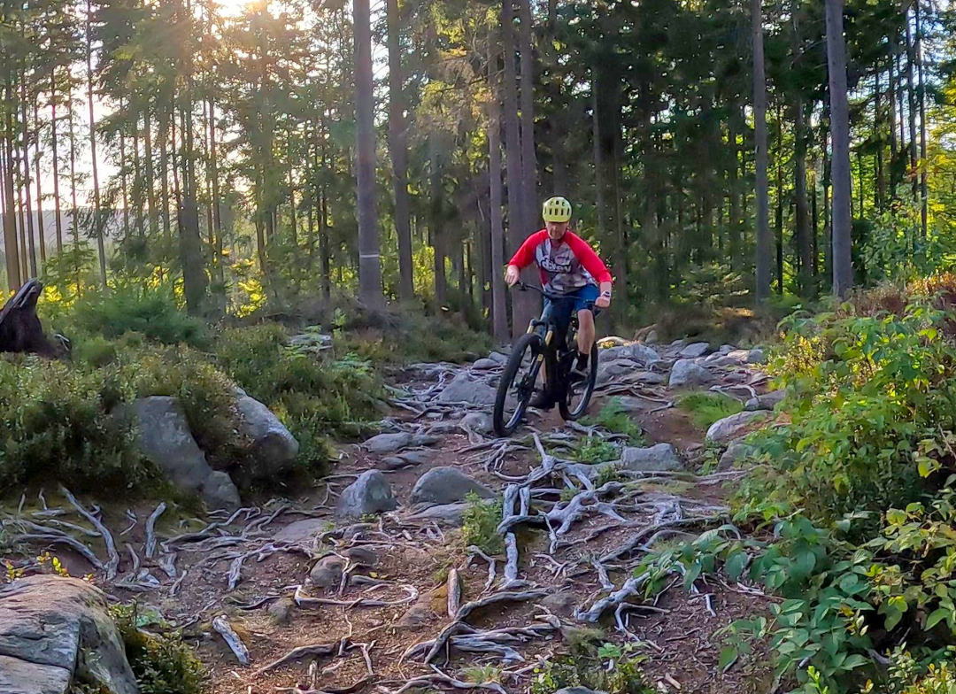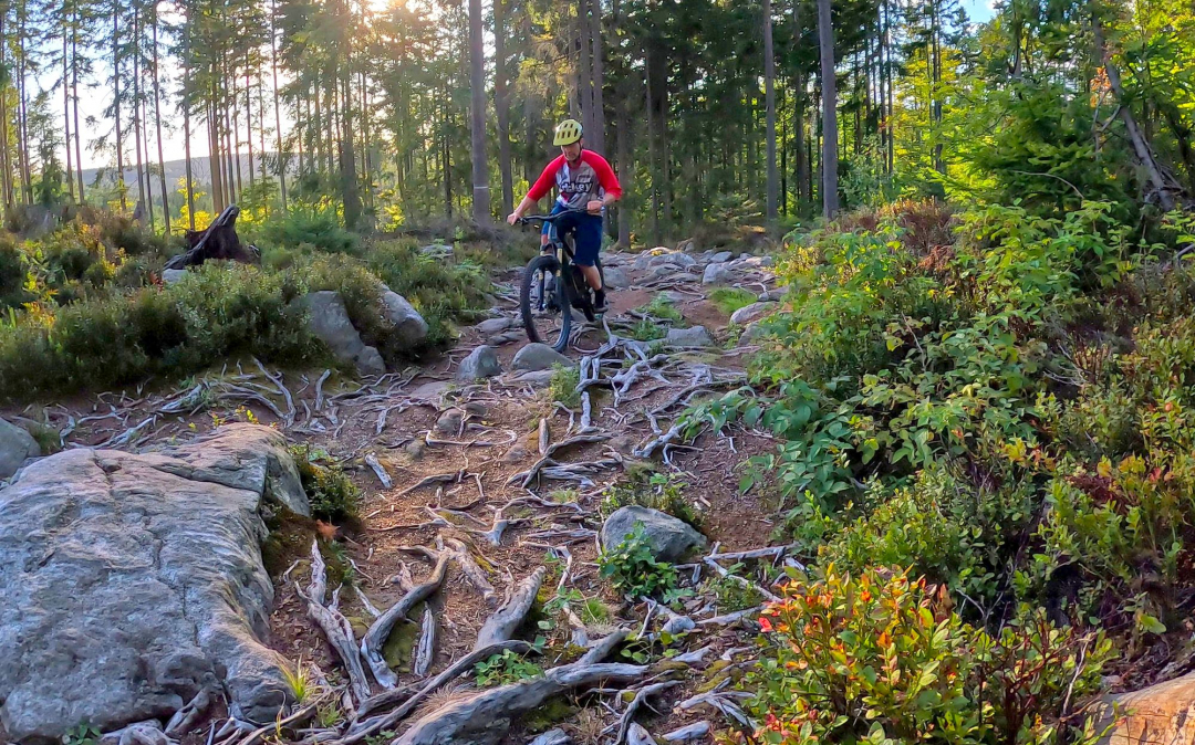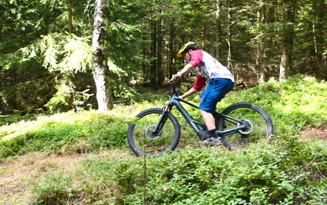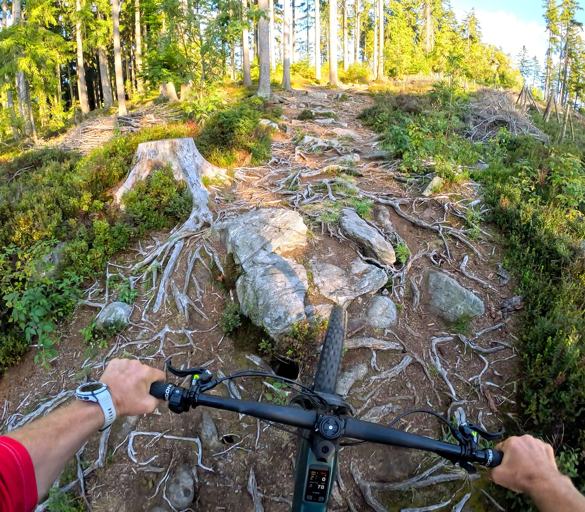 Při běžné jízdě, v "normálním" terénu jsem vlastně nepozoroval žádný rozdíl chování bylo téměř identické. Změny nastaly v místech, kdre šlo opravdu do tuhého. Prudký kopec brutálně posetý kameny i kořeny s těžkým výběrem stopy. Tam se rozdíly projevily více než výrazně. Ale popsat drobné rozdíly mezi chytrým režimem eMTB+ a Race módem není snadné, zážitek z jízdy je těžko přenositelný