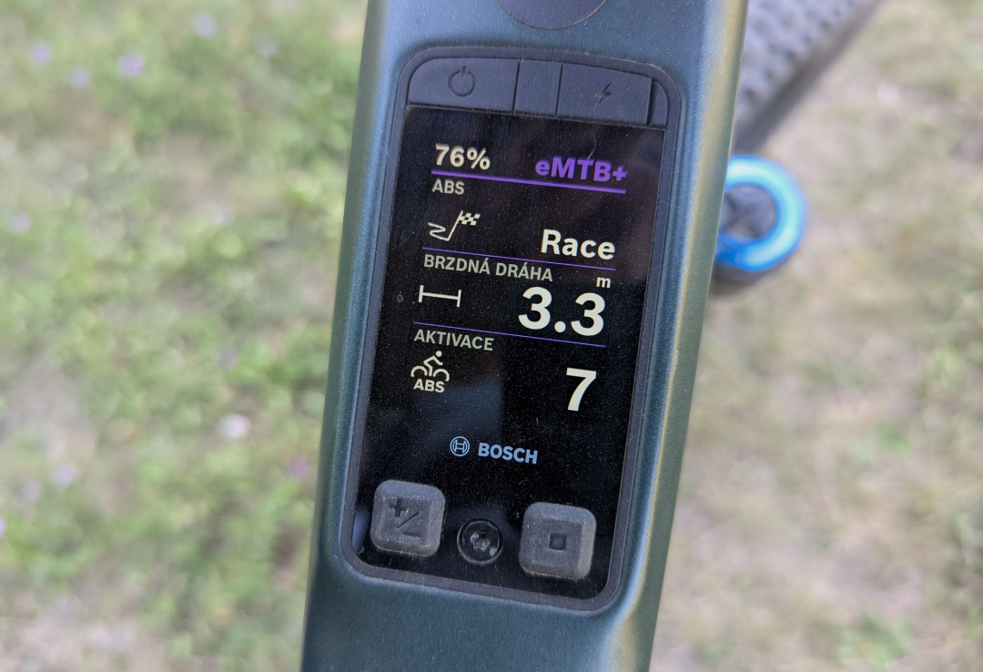Ač nejsem přehnaný fanda elektronických gadgetů na kole, elektrické řazení ani sedlovka mi k srdci nepřirostly, tak s ABS bych se žít naučil velmi rychle. O jeho existenci, nebýt statistiky, vůbec nevím a přínos určitě má. Mluvím o Bosch ABS v Race módu, ten jako jediný nebere brzdný výkon a brzda brzdí stejně ostře jako klasická, jen k ní přidává přidanou hodnotu. Ne náhodou ABS testují týmy závodící ve světovém poháru ve sjezdu, v závodech, kde rozhodují absolutní detaily i drobná výhoda v podobě ABS může rozhodnout o úspěchu.