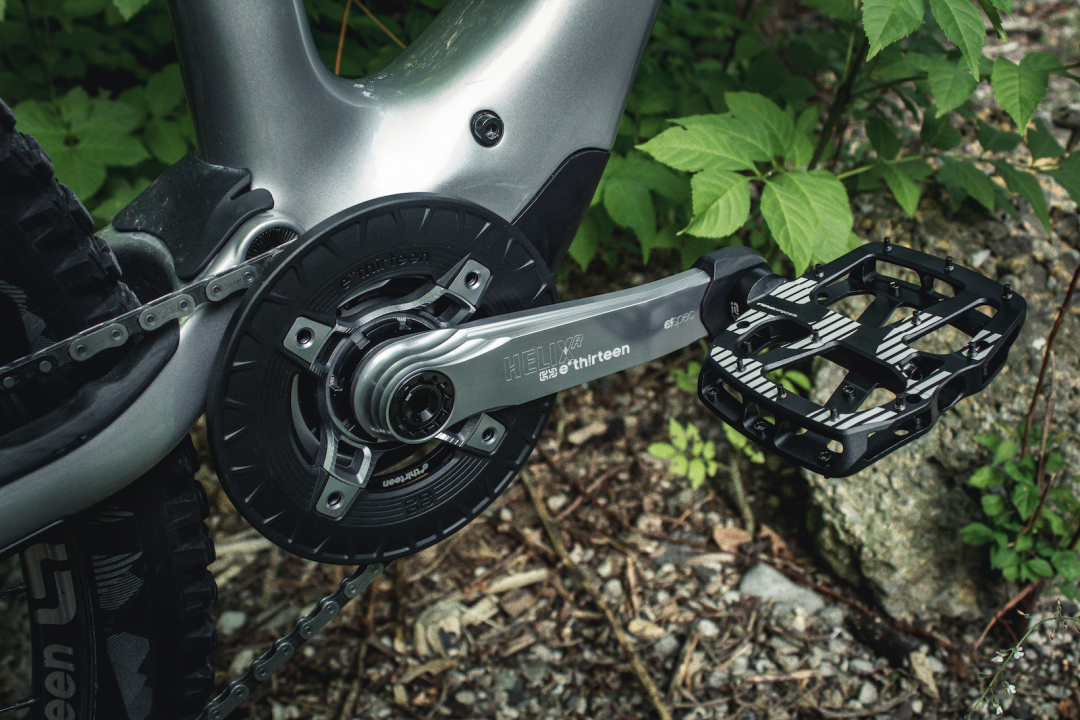 e*thirteen Turbocharger je sestava unašeče, chrániče převodníku a převodníku, která byla navržena speciálně pro populární motory elektrokol, aby ochránila drahé komponenty pohonného ústrojí. Tento výrobek řeší běžný problém majitelů elektrokol: ochranu exponovaných částí pohonu před poškozením nárazem. Jde o první plně integrované řešení s chráničem převodníku a vodítkem řetězu pro motory Bosch SX/CX, TQ HPR 50, Fazua Ride 60 a DJI Avinox.