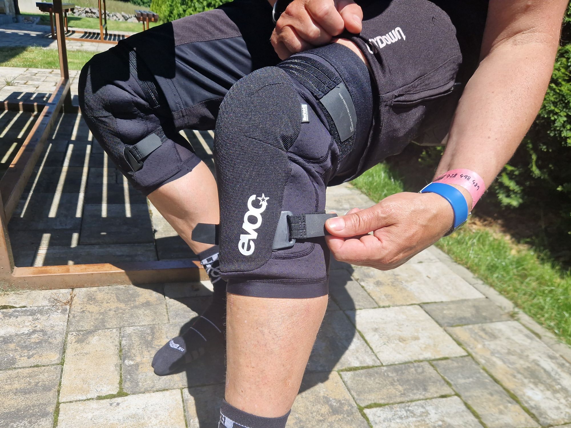 Kolenní chrániče Evoc PROTECTOR LS FLEX ENDURO jsou i přes silnější tlumící vrstvu krytou kordurou dostatečně poddajné, skvěle odvětrané, vydrží na svém místě po celý den. Ano, postrádají pohodlí celopropínacích chráničů, které klidně sundáte a nasadíte několikrát za den, ale popravdě, ono to s těmito Evocy zas tak moc nevadí.