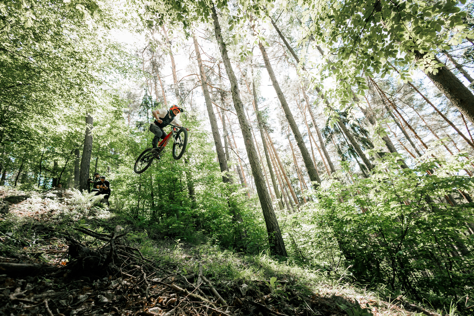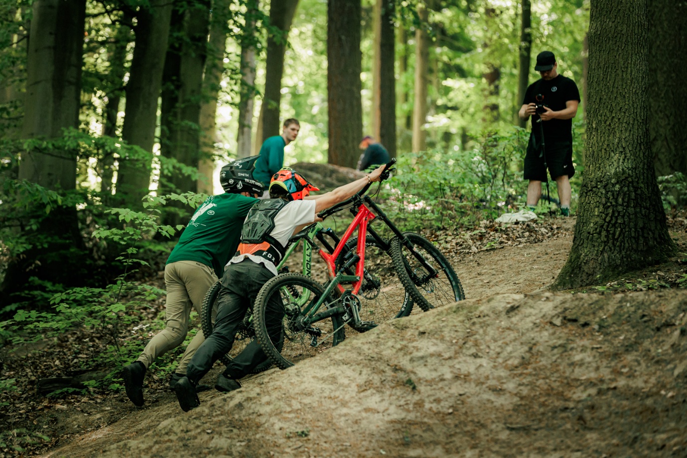 A nebál bych se tvrdit, že tohle rozhodně všichni nedávali! Za zmínku stojí Bambusův výstup, kterej jak viděl Králika s foťákem v zatáčce, chtěl zapůsobit a skončil v pěknejch kotrmelcích. Kutálel se i s kolem mezi pařezy, kameny, stromy. Docela zážitek, ale bez úhony!