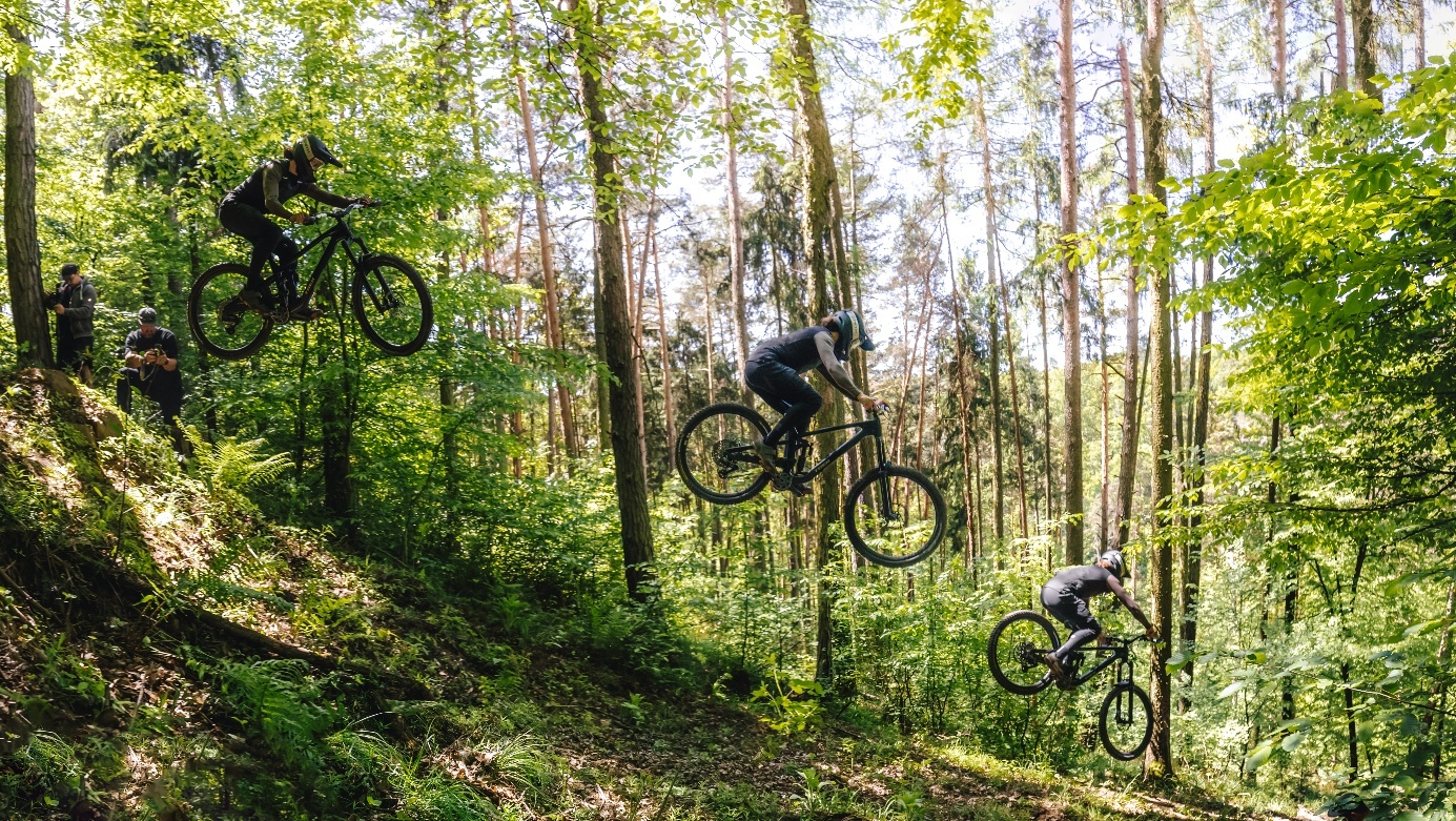 Jde se na dlouhána mezi stromy, cca 18 m dálkoskok, kterému předchází solidní step down na nabrání rychlosti. To už se parta suužuje jen na pár (mladších) jedinců, který mají ještě palivo v nádrži lokálové Martin a Dan předskakují před Filipem Dianem, Vojtou Moudrým následují je Maty Mlejnek a David Číla .