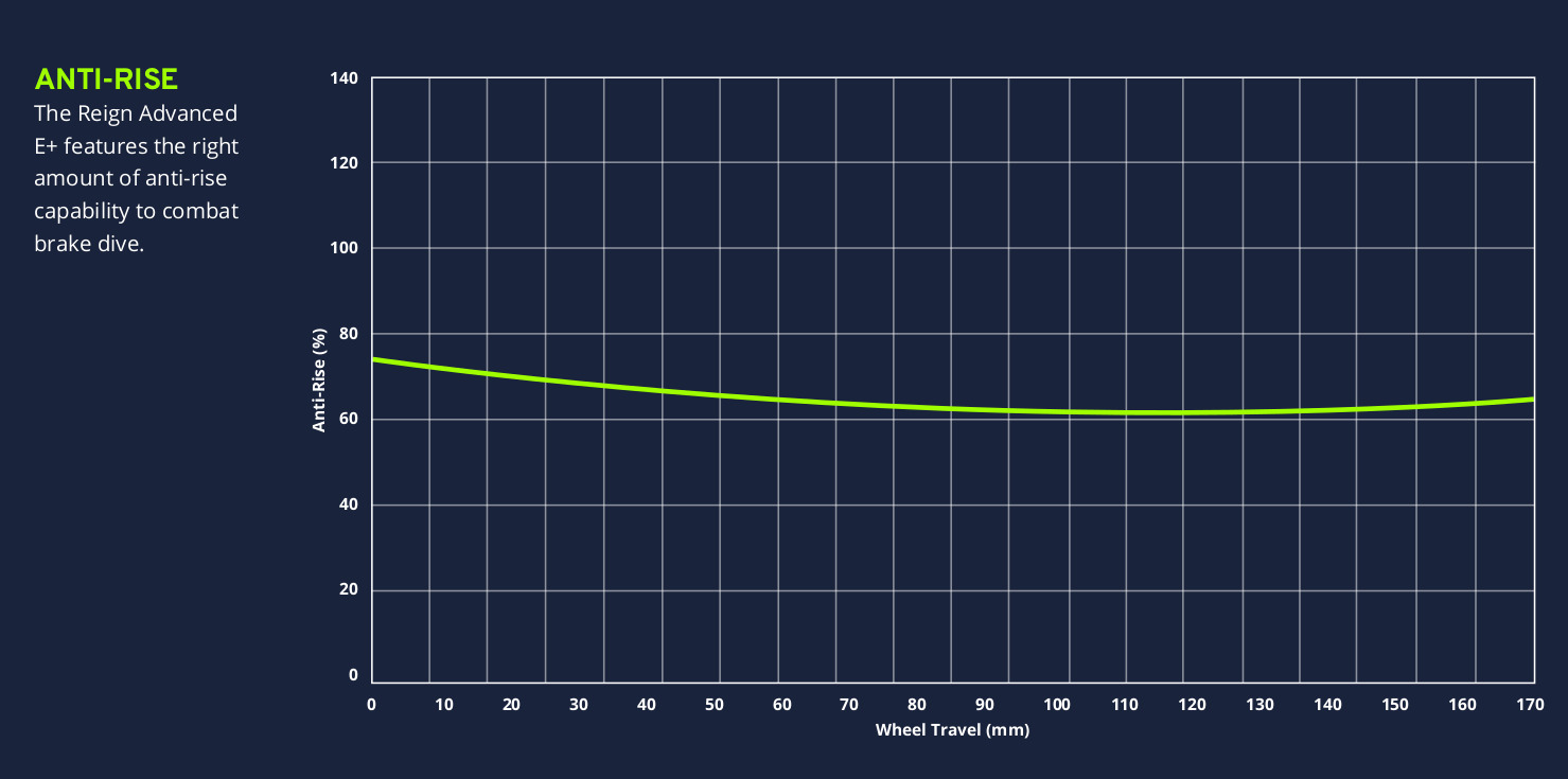 Srdcem Reign Advanced E+ je systém zadního odpružení Maestro s hladkým, aktivním výkonem a pocitem bezednosti. Využívá každý milimetr ze svých 170 mm zdvihu a je spárován se 180mm vidlicí, čímž představuje nejpokročilejší nastavení odpružení, jaké kdy Giant na E-MTB použil. Je navrženo a vyladěno pro bezprecedentní kontrolu a jistotu v široké škále terénu - od vysokorychlostních sjezdů až po ostré rock gardeny, skoky a slepé dropy.