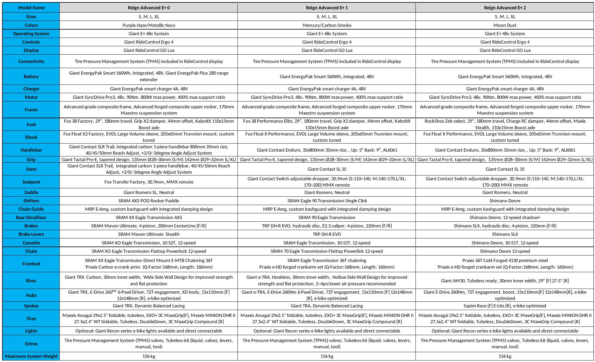 Giant Reign Advanced E+, kompletně přepracovaný oproti předchozí generaci, je postaven na super pevném a lehkém kompozitovém rámu, upraveném 170mm zadním odpružení Maestro a aktualizovaném systému E+ s výkonným novým 48voltovým motorem SyncDrive Pro 3. Třípolohový flip chip umožňuje nastavit geometrii podle vašeho stylu jízdy a terénu a nový hlavový "flip chip" dovoluje upravit dosah (Reach).